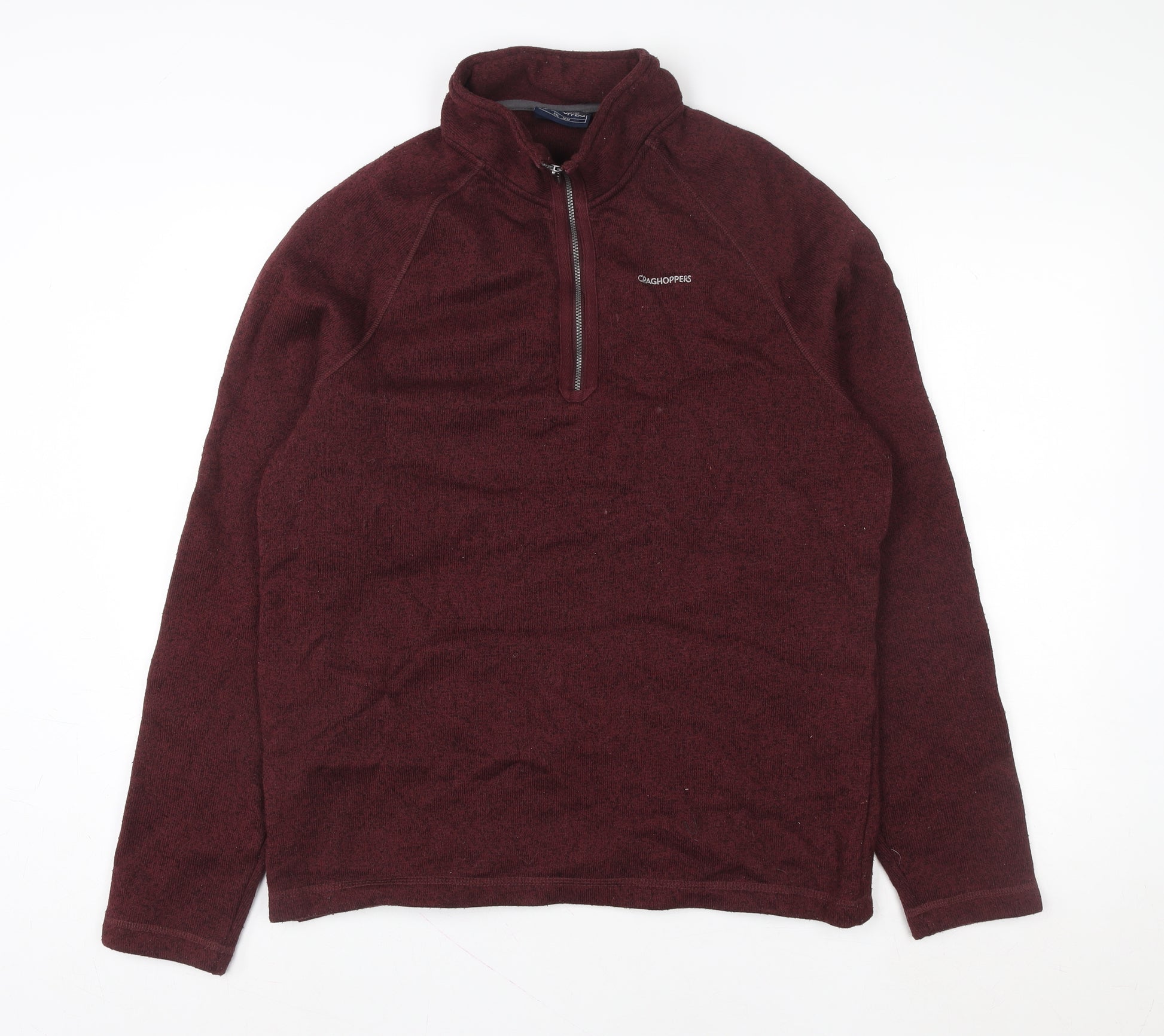 Stay warm and comfortable in this Craghoppers Men’s Red Fleece 1/4 Zip Pullover Sweatshirt in size XXL, designed for everyday wear and outdoor adventures. Made from 100% polyester fleece, this sweatshirt is both lightweight and insulating, ensuring a cosy feel during colder months while maintaining breathability. Its rich red tone offers a versatile and stylish look suitable for layering or wearing solo across multiple seasons. The half-zip design allows for adjustable ventilation and ease of wear, and the high neck provides additional warmth and protection against chilly breezes. Designed for men who value practicality, this pullover provides a soft, brushed texture, enhanced by durable stitching and Craghoppers’ signature embroidered logo on the chest for a refined finish. Ideal for hiking, walking, or casual wear, it’s the perfect addition to any active wardrobe. The regular fit allows for easy movement without compromising on comfort, and its simple, classic style ensures it pairs effortlessly with jeans, casual trousers, or performance outdoor gear. Machine washable for easy care, this fleece sweatshirt embodies Craghoppers’ trusted British outdoor heritage, combining functionality with timeless design. With only light signs of wear and excellent overall condition, it remains a high-quality piece perfect for outdoor enthusiasts or anyone seeking dependable warmth. Whether used as a mid-layer under a waterproof jacket or worn alone on cool days, this pullover delivers comfort, versatility, and style at a great value. A dependable wardrobe staple for autumn, winter, and spring seasons, this Craghoppers fleece will keep you feeling warm and looking effortlessly outdoorsy every time you wear it.