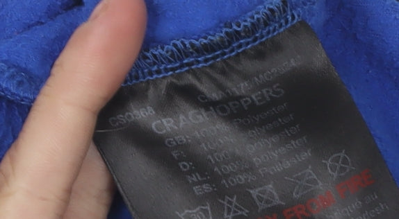 Stay warm and comfortable with this Craghoppers Men's Blue Fleece Quarter-Zip Sweatshirt. Perfect for the cooler months of autumn and winter, this sweatshirt is designed with a high neck and long sleeves to provide optimal warmth and style. Made from 100% polyester fleece, it's lightweight, machine washable, and easy to care for. Ideal for hiking and outdoor activities, it features a convenient quarter-zip closure and a classic logo accent, making it both functional and fashionable. In an excellent condition, with no visible defects or stains, this sweatshirt is a fantastic addition to any wardrobe.