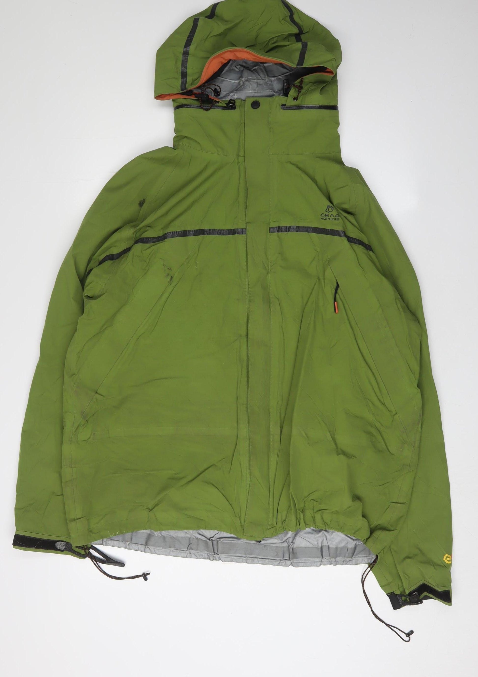 Experience the ultimate in outdoor protection with this Craghoppers Men's Green Waterproof Hooded Jacket. Designed with both style and functionality in mind, this jacket is perfect for hiking, walking, and other outdoor activities. Made from 100% polyamide, the jacket is equipped with excellent waterproof and windproof features, ensuring you stay dry and comfortable in unpredictable weather. The taped seams add an extra layer of protection against the elements, while the stand-up collar and hood provide additional coverage and warmth.This vibrant green raincoat is tailored in a relaxed fit, making it ideal for layering over your favourite outdoor gear. Its mid-length cut enhances protection without compromising on style. Practicality is key with this jacket, featuring a secure zip and hook & loop closure, and an accent logo that adds a touch of flair. Whether you're braving a downpour in autumn or navigating through windy winter days, this jacket promises to keep you sheltered and looking sharp.Maintaining this jacket is hassle-free, thanks to its machine washable nature. Although in very good condition, slight wear and marks are visible, adding character to this robust outdoor essential. Sized at 2XL, it fits seamlessly into your regular wardrobe, providing you with a reliable option for casual occasions. Don't miss out on this versatile outdoor companion—perfect for those who love to embrace the wilderness head-on.