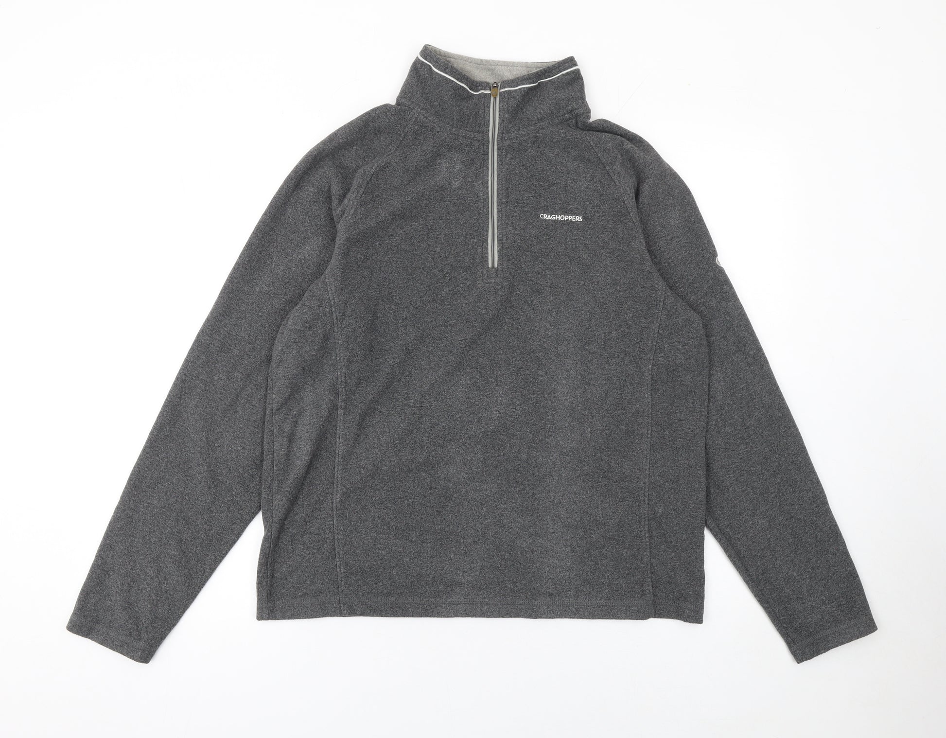 Stay warm and comfortable with this Craghoppers men's grey fleece sweatshirt, ideal for autumn, spring and winter wear. Designed with practicality in mind, this pullover features a high neckline and a quarter zip closure that allows easy layering and ventilation, making it suitable for various outdoor pursuits. The lightweight, breathable fleece fabric provides both warmth and durability without compromising comfort. Crafted from 100% polyester, it maintains softness and resists pilling over repeated wear. The simple, no-pattern design coupled with a regular fit ensures a classic, versatile style that complements any casual wardrobe. Perfect for hiking, walking, or relaxing at home, it combines comfort and performance for active men. The understated grey colour keeps it easy to pair with jeans, joggers or outdoor trousers. This Craghoppers fleece offers an ideal balance of functionality and everyday style, representing dependable outdoor gear from a trusted brand known for quality clothing. Though previously owned, it’s in excellent condition, showing minimal signs of use and no visible damage, ready to deliver many more seasons of reliable comfort. A practical addition for any man who values warmth and simplicity in their wardrobe.