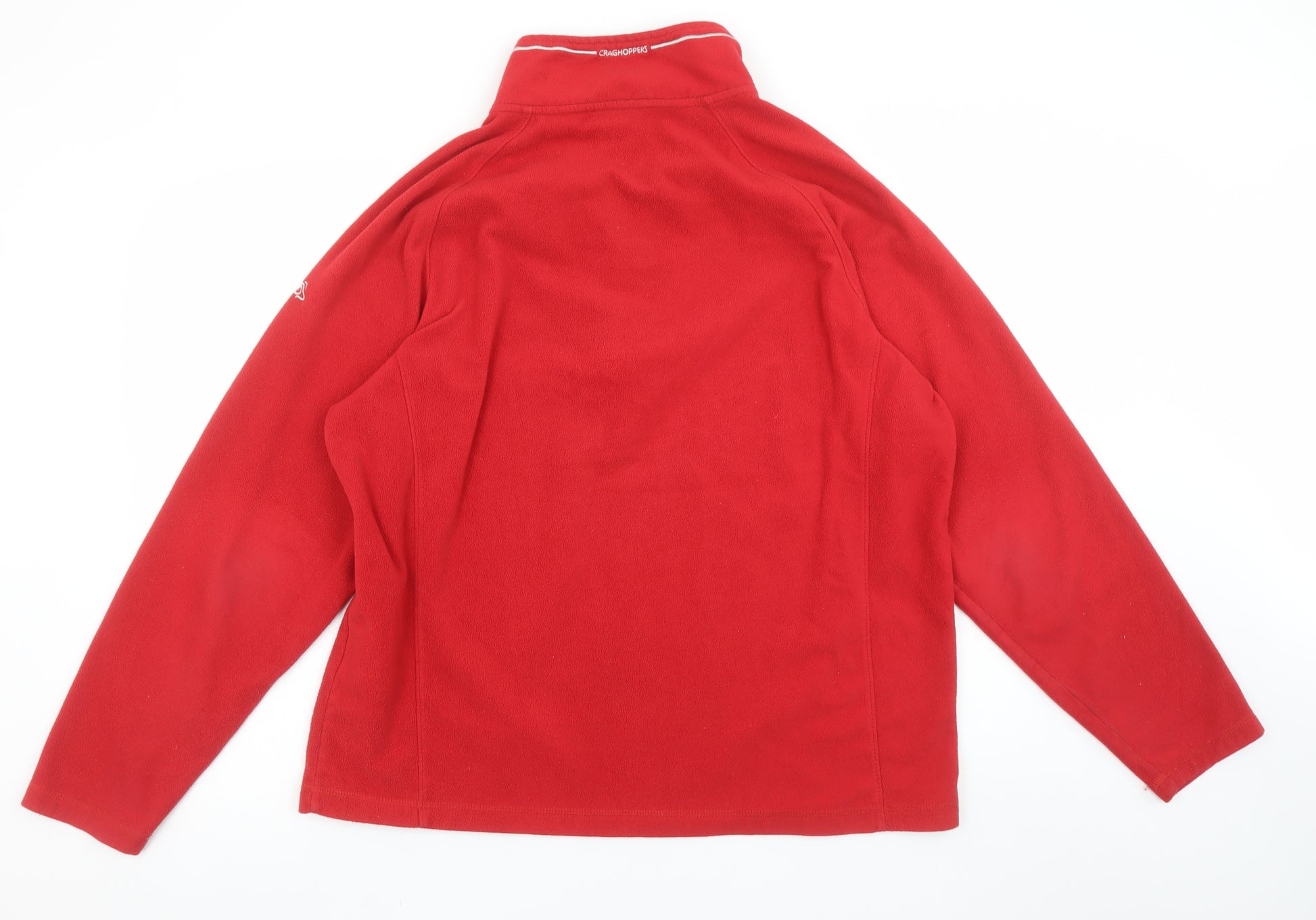 Stay warm and comfortable in the great outdoors with this Craghoppers Men's XL red fleece pullover sweatshirt. Designed in the UK, this high-quality fleece features a half zip fastening for easy layering and ventilation, making it ideal for walking, hiking, or casual wear. The vibrant red colour adds a pop of style, while the soft fleece fabric provides lightweight warmth perfect for cooler days. Made from 100% polyester, this regular fit sweatshirt combines durability with breathable comfort. Its high neck and long sleeves offer good coverage from the chill, while the simple yet classic pullover style ensures timeless appeal. Designed for all-season use, it works well as a mid-layer in cold weather or a standalone top in milder conditions. The easy-care, machine washable fabric ensures convenience for everyday use. Craghoppers’ reputation for outdoor-ready and practical clothing makes this fleece an excellent choice for adventurers and outdoor enthusiasts alike. The minimalist design with a small logo detail on the chest maintains a smart yet functional look suitable for a range of casual and outdoor activities. This pre-owned item is in excellent condition with only slight signs of wear, showing its quality and care in previous use. Whether you’re heading out on a winter hike, taking a countryside walk, or simply looking for a comfortable fleece for relaxed days, this Craghoppers pullover suits a variety of occasions. Stay cosy, active, and effortlessly stylish in this functional outdoor essential.