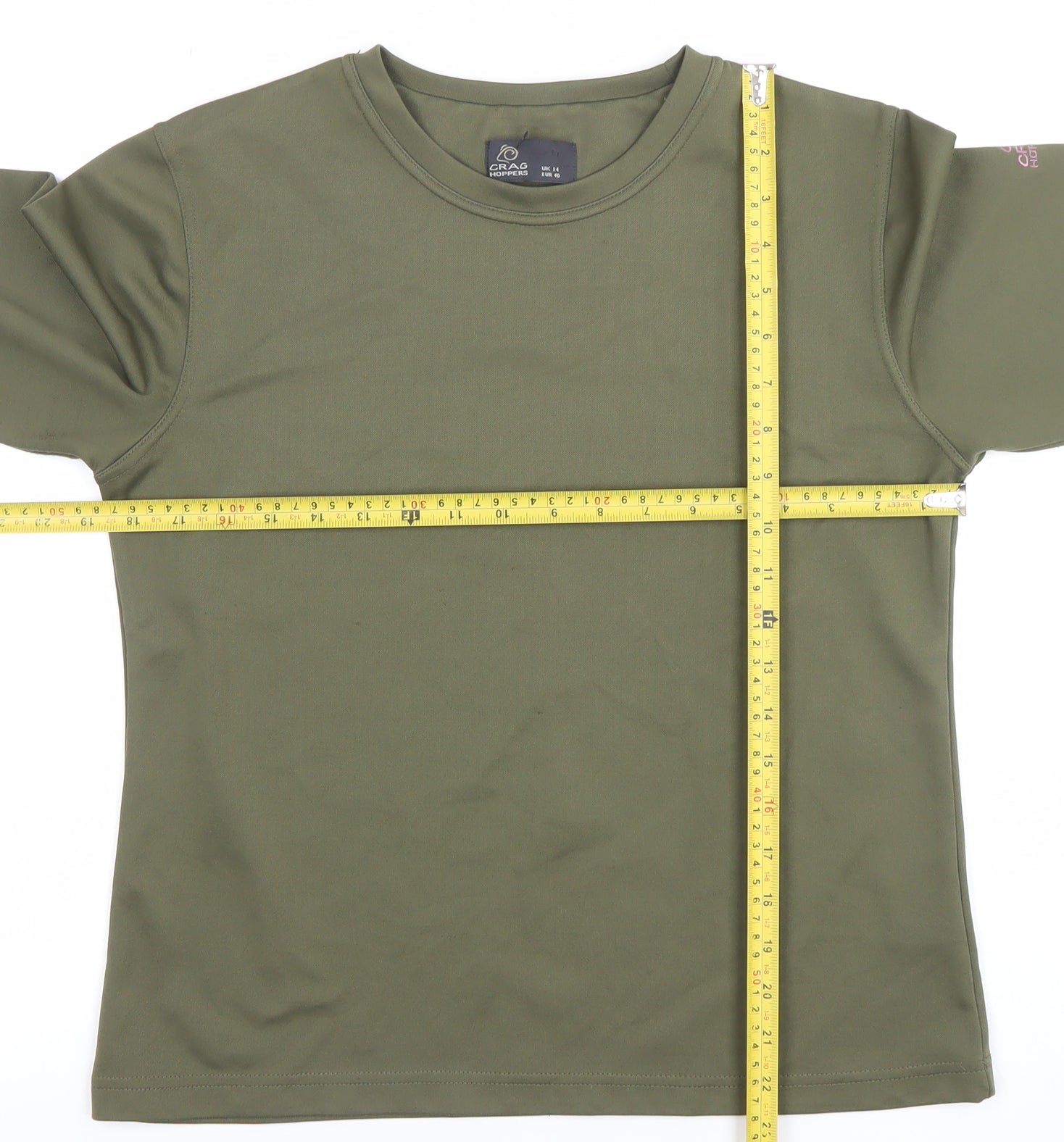 Stay comfortable and stylish on your outdoor adventures with this Craghoppers women's activewear top in a classic khaki green tone. Crafted from 100% polyester, the lightweight fabric offers excellent breathability and moisture-wicking properties, helping you stay cool and dry whether you're hiking trails, walking, or simply enjoying an active day outdoors. Designed with a regular fit and long sleeves, it ensures maximum comfort and unrestricted movement throughout your activities. Featuring a crew neckline and a simple pullover style, this top provides a sleek, practical look that’s easy to layer under jackets or gilets when the weather cools. The solid colour design gives it timeless versatility, pairing effortlessly with leggings, hiking trousers, or jeans for a relaxed, sporty vibe. Ideal for spring, autumn, and winter use, its soft jersey texture offers all-day ease and durability. The quality craftsmanship from Craghoppers ensures longevity and performance even with frequent wear. In excellent pre-owned condition with minimal signs of use, this piece remains a reliable essential for outdoor enthusiasts and casual wearers alike. Machine washable for easy care, this top is ready to accompany you on your next adventure while keeping you comfortable and confident on the go. A perfect choice for women who value function, fit, and everyday style — this Craghoppers long sleeve top delivers all three in a simple yet effective design.