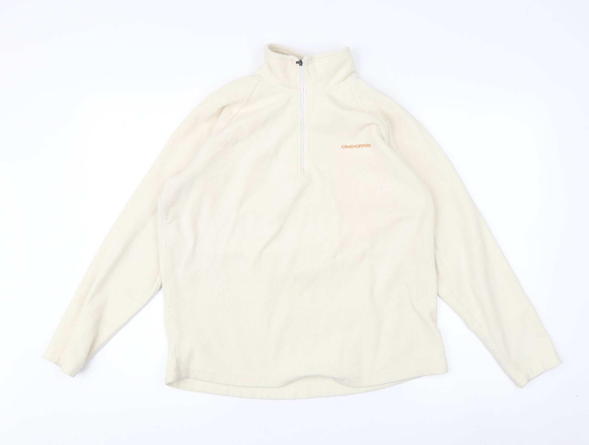 Stay chic and comfortable with this Craghoppers Women's Ivory Pullover Sweatshirt. Tailored for casual outings, this regular-fit sweatshirt is perfect for the cooler seasons of autumn and winter. Featuring a mock neckline and long raglan sleeves, it's designed to offer both style and practicality for hiking or other outdoor activities. The polyester fleece fabric ensures warmth and coziness, while the 1/2 zip closure adds a convenient touch. The sweatshirt is machine washable for easy care and has slight signs of wear, ensuring durability without compromising on quality. Whether you're exploring the great outdoors or enjoying a relaxed day out, this sweatshirt blends functionality with a touch of elegance. Ideal for women who prefer a fashionable, yet laid-back look.
