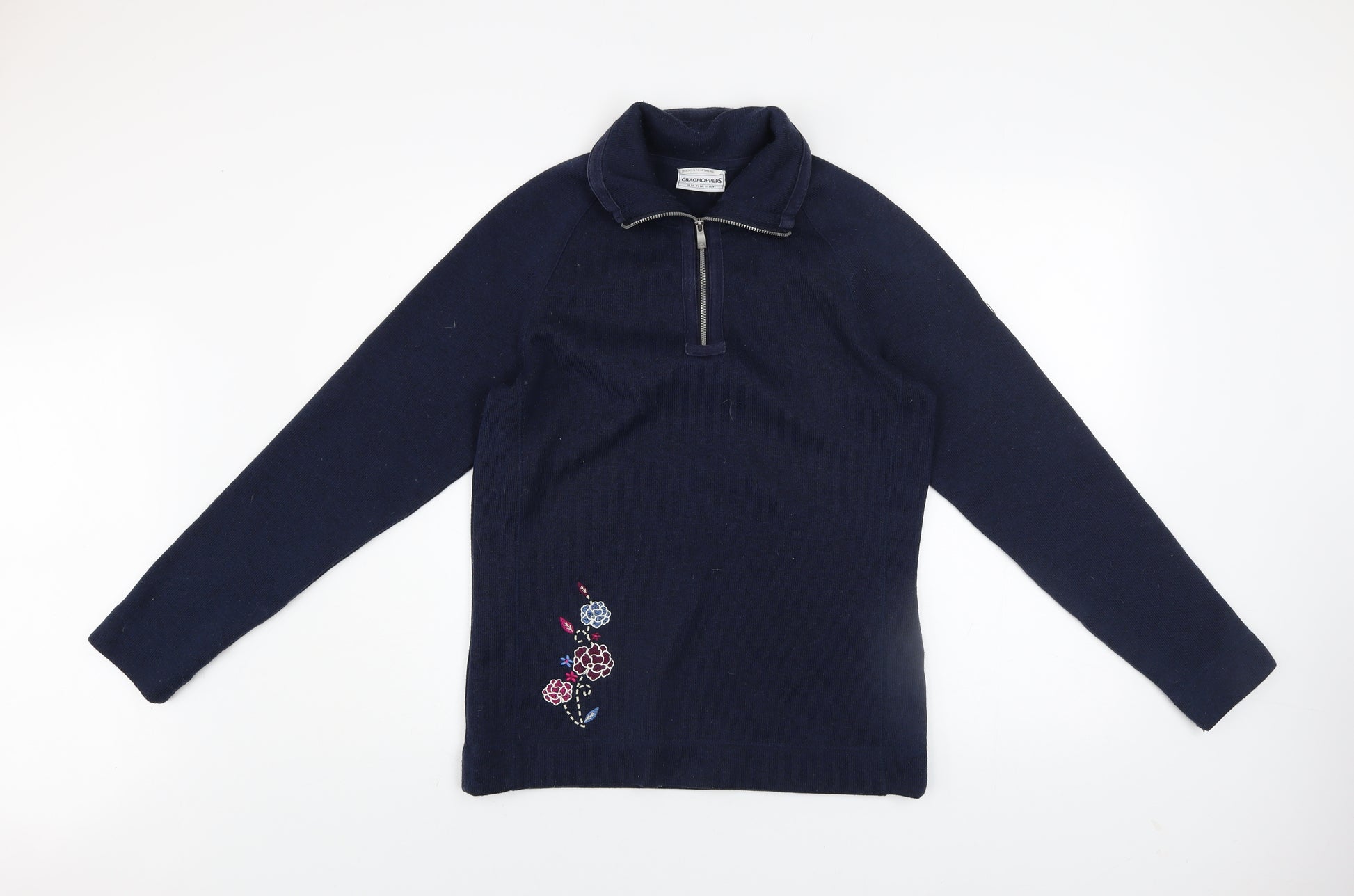 Womens Navy Blue 1/2 Zip Pullover Sweatshirt UK 12 Embroidered