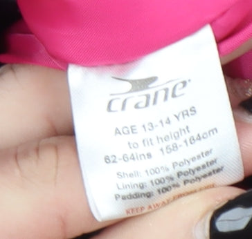 Prepare your young explorer for cold-weather adventures with this Crane Girls Black Hooded Puffer Jacket, designed to provide comfort, warmth, and durability throughout the winter months. Crafted from 100% polyester, the jacket boasts a lightweight yet well-insulated construction, keeping the chill out while allowing easy movement for school days or weekend outings. The mid-length cut offers practical coverage, and the soft pink lining adds a fun pop of colour that coordinates seamlessly with the bold pink pocket zips and contrasting blue front zip for a playful, sporty finish.This jacket features a fully hooded design to protect against wind and rain, a full-zip fastening for easy wear, and two zipped front pockets that perfectly combine style with function. Ideal for everyday wear or outdoor activities, the Crane Puffer Jacket features an insulated and fully lined interior, soft to the touch yet durable enough to withstand active use. Designed with a regular fit and long sleeves, it ensures comfort without bulk, perfect for layering over jumpers or hoodies.The practical polyester shell makes it water-resistant for light showers, while the machine-washable material ensures easy maintenance and care. Suitable for casual wear, school journeys, walking, or light outdoor activities, this versatile jacket is a must-have addition to her cold-weather wardrobe. Despite being pre-owned, it remains in excellent condition, showing no signs of wear, marks, or tears, making it a fantastic value choice for parents.Whether she’s off to class or out adventuring with friends, this Crane Girls Black Hooded Puffer Jacket provides dependable warmth and effortless style. A dependable outer layer built for both comfort and performance, it’s perfect for those who need a hard-wearing jacket without compromising on style.