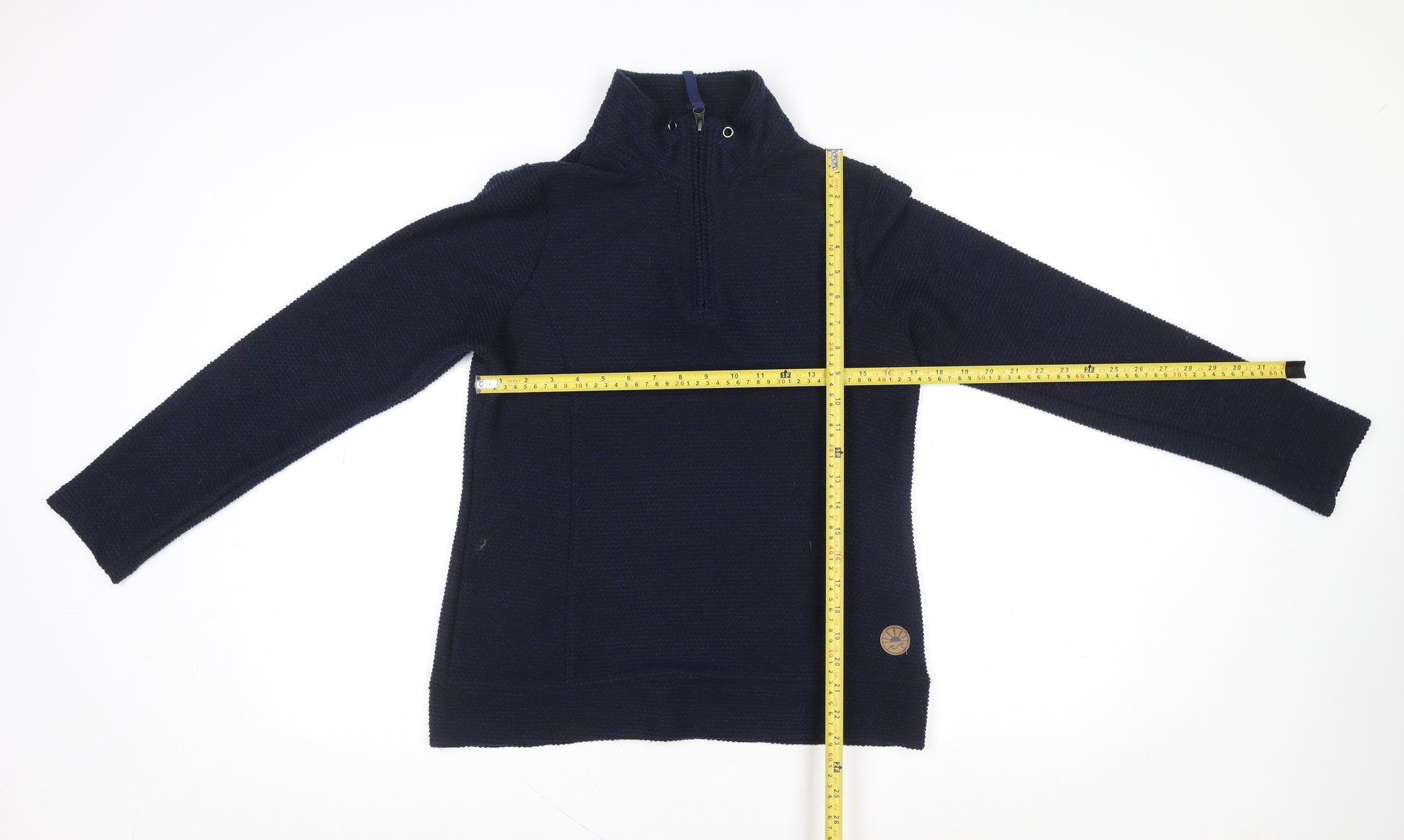 This Crane men's half-zip pullover sweatshirt offers a comfortable and functional design perfect for everyday wear or outdoor activities. Crafted from a mid-weight knit blend of 49% polyester, 44% acrylic, and 7% cotton, it delivers warmth without bulk and excellent breathability. The dark navy blue tone provides timeless versatility, easily coordinating with jeans, joggers, or walking trousers, making it an ideal choice for casual looks or layering in cooler seasons.The practical high-neck design with a half-zip closure allows adjustable ventilation while maintaining warmth when zipped up. Its soft, textured knit fabric gives a subtle tactile finish and a durable structure that resists easy wear. Designed in a regular fit, it provides a relaxed silhouette that suits a range of body shapes and ensures freedom of movement.Perfect for hiking, walking, or casual city wear, this pullover sweatshirt brings reliable comfort and simple style to your wardrobe. The long sleeves and ribbed hems help retain heat through chilly days, while the breathable polyester-cotton blend makes it suitable for transitional weather during autumn, spring, and mild winter days. Whether layered over a T-shirt for a casual outing or worn under a jacket for a brisk walk outdoors, it’s a versatile wardrobe essential.With its practical construction and resilient fabric mix, this Crane men’s half-zip sweatshirt is a dependable choice for active lifestyles, combining functionality with understated style. Light signs of wear, including a small snag, are reflected in the price but do not affect overall look or performance.