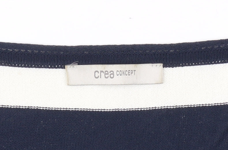 Embrace effortless style with this Crea Concept Women’s Striped Top, perfect for adding a touch of sophistication to any wardrobe. Crafted from a quality blend of viscose and polyamide, this top combines lightweight comfort with a soft, luxurious feel. The striking multicoloured design makes it a versatile addition to your closet, and the classic crew neckline offers a neat finish for a polished look. Ideal for various occasions, from casual outings to smart-casual gatherings, its trendy striped pattern ensures you make a stylish statement wherever you go. Despite a faint yellow stain, the condition remains excellent, providing great value. Pair with your favourite jeans or tailored trousers for an effortlessly chic ensemble. Machine washable for easy care, this top is designed for modern, busy lifestyles.