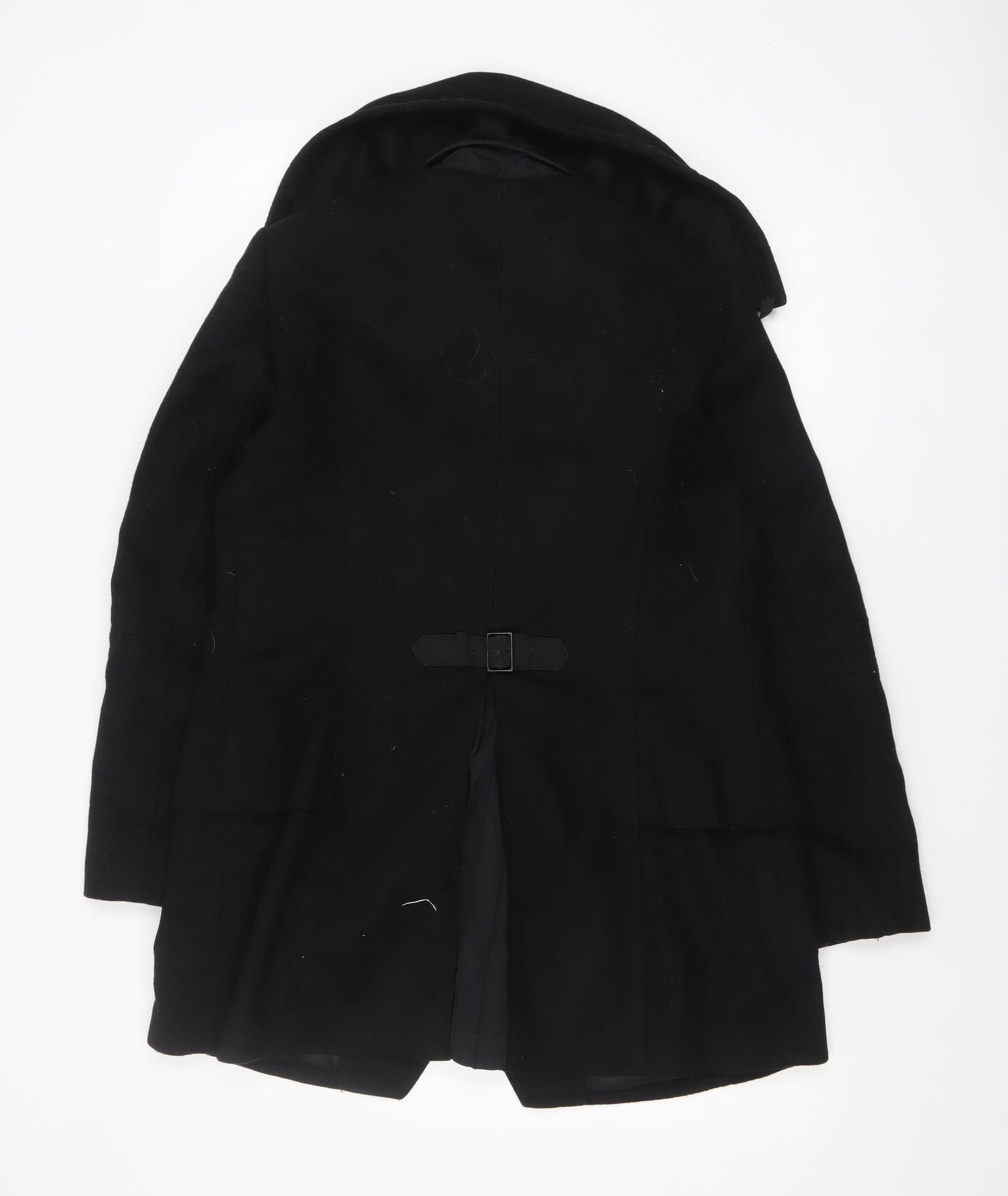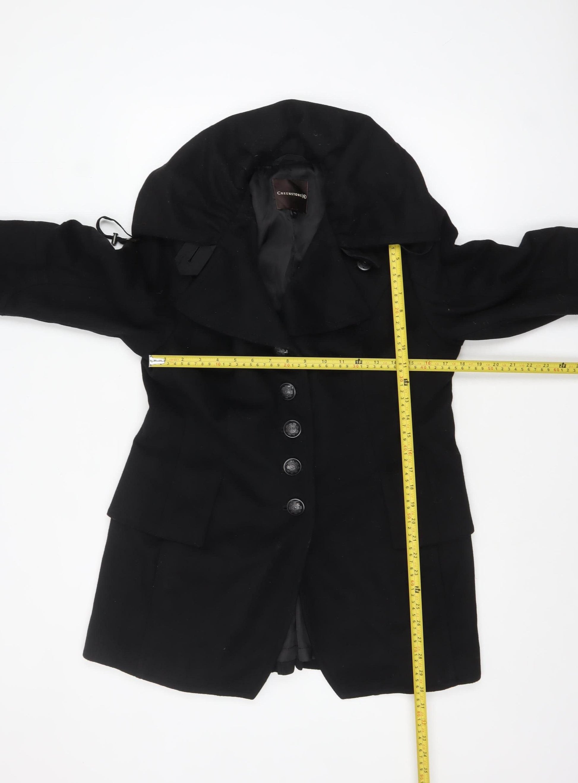 Women's Black Wool Blend Mid-Length Overcoat Size 12