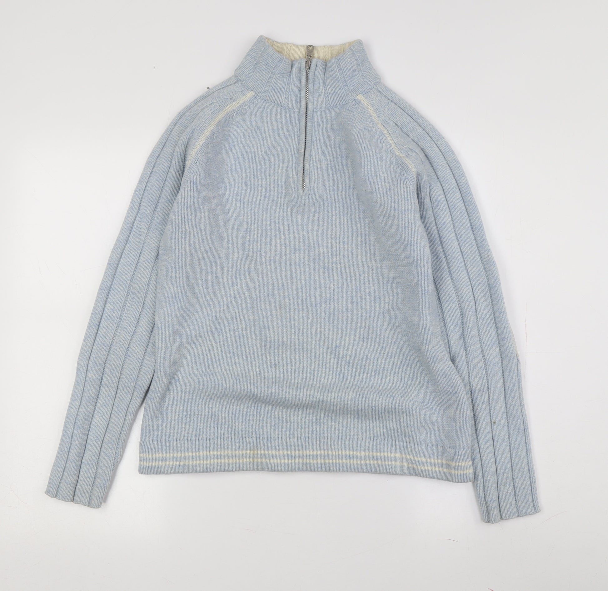 Elegant and cozy, this Crew Clothing Co women's pullover jumper in a soothing blue shade is perfect for winter wear. Crafted from luxurious 100% merino wool, it ensures warmth and comfort in cold weather. The jumper features a high neckline with a stylish half-zip accent, allowing for adjustable comfort and a touch of modern edge. Long raglan sleeves add a classic touch, providing a relaxed fit and ease of movement. Ideal for casual outings, this knit jumper embodies both style and functionality. Its regular fit is flattering for any casual occasion, making it a versatile addition to your wardrobe. Despite being pre-owned, the garment is in excellent condition, showcasing its lasting quality. Embrace the cooler months in style with this versatile and chic jumper. Hand wash only to maintain its fabulous softness and colour. Add this elegant piece to your ensemble, ensuring both warmth and a touch of elegance throughout the season.