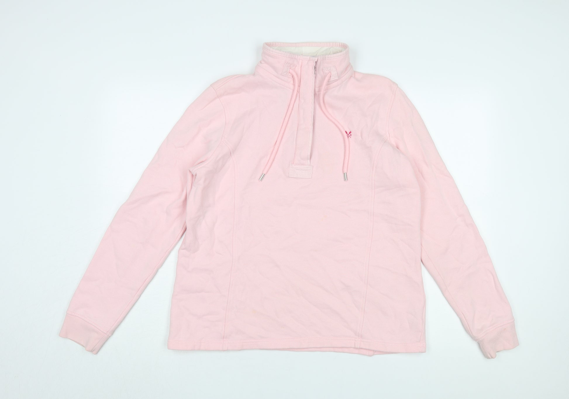 Add a touch of elegance to your casual wardrobe with this Crew Clothing Co. women's pullover sweatshirt. Crafted in a charming pink hue, this piece boasts a regular fit and high neckline, perfect for layering in any season. Made from 100% cotton, it ensures comfort and breathability, making it ideal for everyday wear. The long sleeves provide warmth, while the drawstring closure adds a playful touch to its classic design. Whether you're lounging at home or meeting friends, this sweatshirt is versatile enough to suit any casual occasion. The subtle logo accent enriches the look, embodying Crew Clothing Co.'s reputation for quality and style. Despite being pre-loved, it remains in excellent condition, with minimal wear visible. Don't miss the chance to own this lovely addition to your wardrobe, offering comfort and chic style effortlessly.