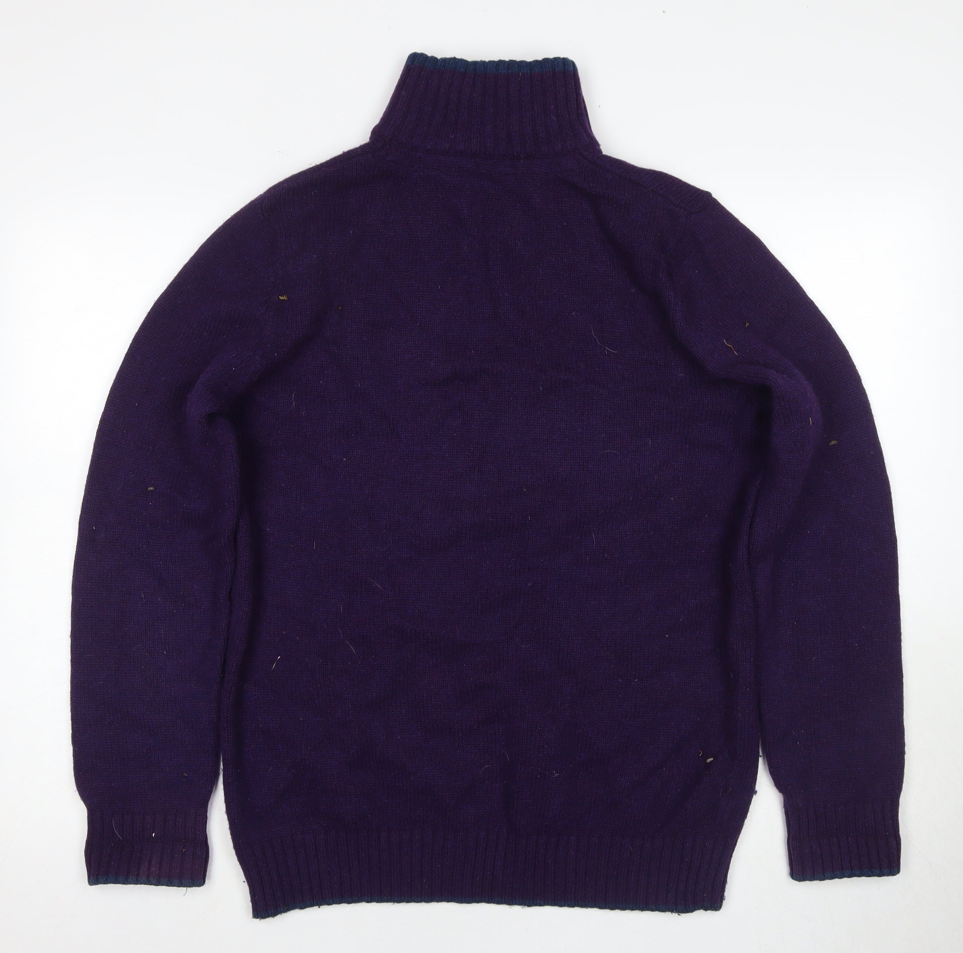 Add a touch of elegance to your winter wardrobe with this stunning Crew Clothing Co. women's purple pullover. Crafted from a luxurious wool blend, this jumper offers both warmth and style, perfect for the colder months. The high neckline and long sleeves provide extra coziness, making it an essential piece for any casual occasion. The beautiful purple shade adds a vibrant pop of colour to your outfit, while the clean, no-pattern design ensures versatility across various styles. This heavyweight jumper features a convenient 1/2 zip accent, allowing for adjustable comfort and airflow as needed. The raglan sleeves offer a comfortable, unrestricted fit, enhancing the jumper's overall relaxed feel. Despite being in excellent condition, minor pilling is present, typical of woolen garments, and does not detract from its charm. With its tight-knit fabric, this pullover promises durability and timeless appeal. Ideal for casual outings, it effortlessly complements jeans or trousers, ensuring you remain chic and warm. Experience the blend of style and functionality with this Crew Clothing Co. jumper, a standout addition to any collection.