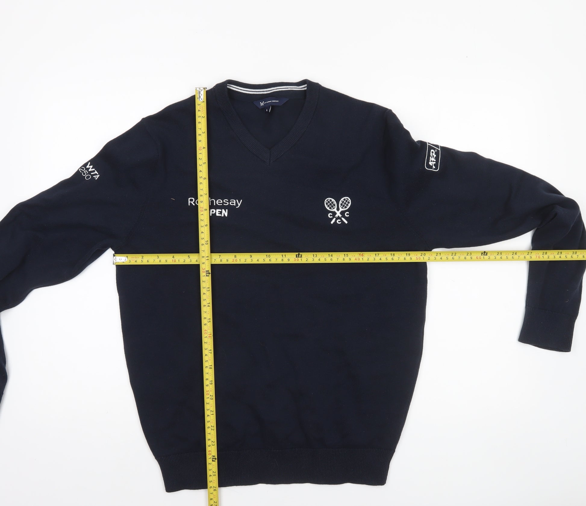 Crew Clothing Men’s Blue Cotton Cashmere V-Neck Jumper L