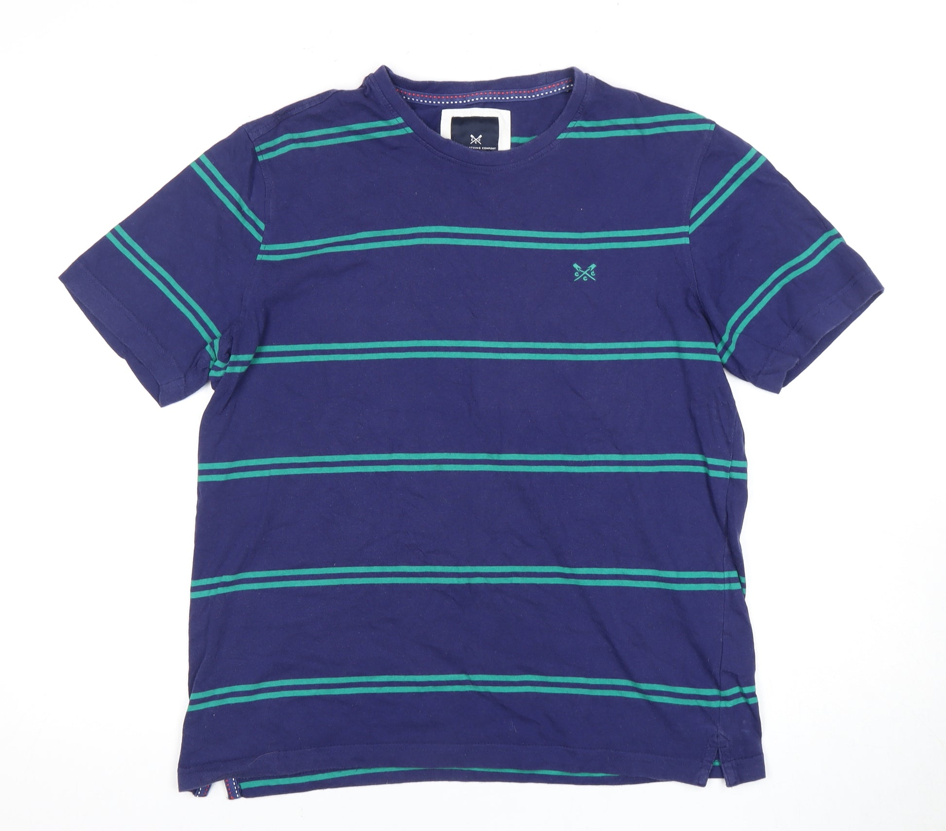 Discover effortless style with the Crew Clothing Company Men's Blue Striped T-Shirt. Crafted from 100% cotton, this t-shirt offers breathable comfort and a soft touch, perfect for all seasons. The classic crew neck design and regular fit ensure a comfortable and versatile wear, while the striking blue colour accented with green stripes adds a vibrant twist to your casual wardrobe. This short-sleeved tee is an ideal choice for layering under jackets during the cooler months or wearing solo in warmer weather. Machine washable for easy care, it provides a no-fuss solution to everyday fashion. Although in excellent condition, the fabric exhibits slight fading, lending a subtle vintage charm. Ideal for casual outings and relaxed social gatherings, this Crew Clothing Company t-shirt combines style and practicality, ensuring you look great wherever you go.