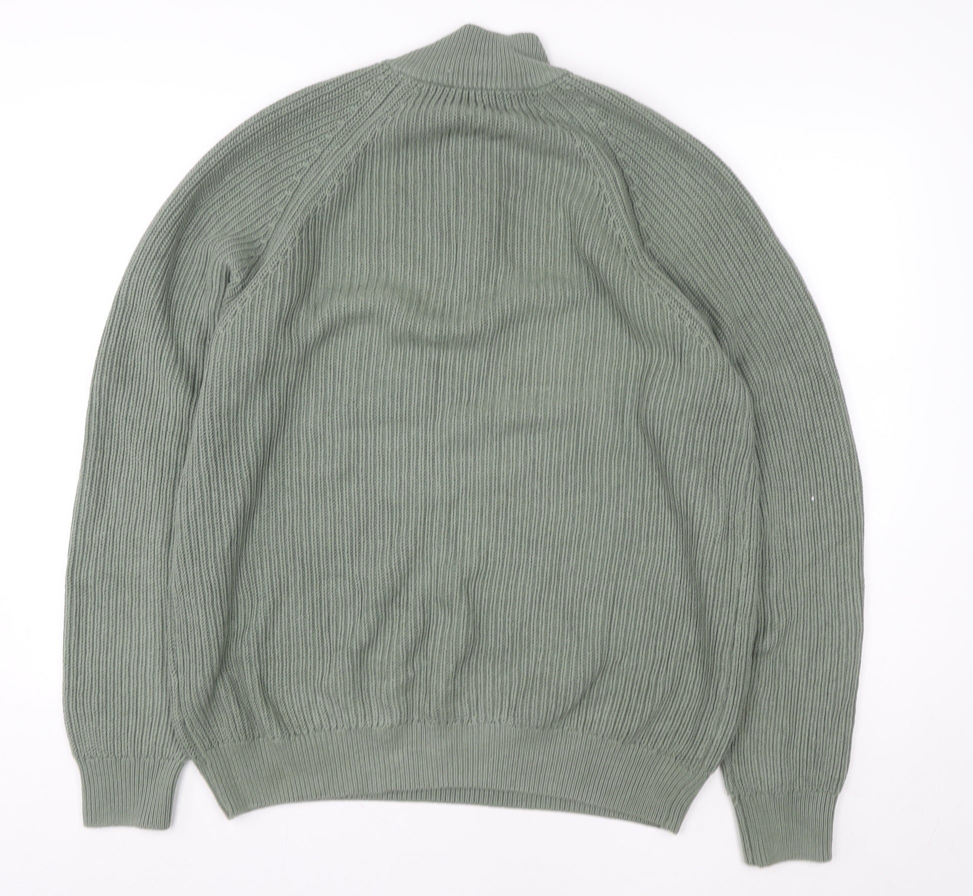 Men's Green 1/4 Zip Cotton Knit Sweatshirt L