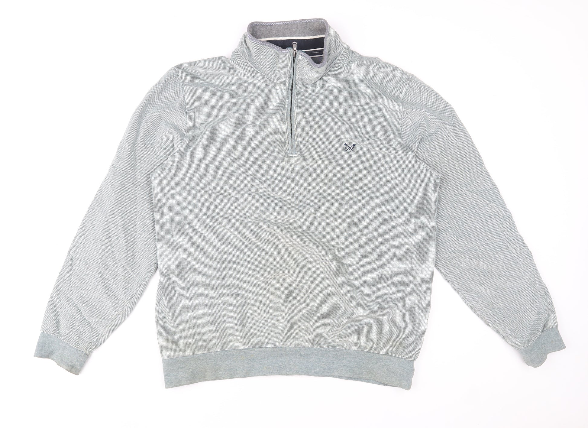This Crew Clothing Company men's half zip jumper in grey offers a perfect balance of classic style and comfortable wear. Made with a soft and breathable blend of 80% cotton and 20% polyester, this lightweight knit is ideal for layering throughout the cooler months. The high neck design with a half zip fastening adds versatility to your look, making it easy to dress up for a semi-smart occasion or down for a relaxed weekend style. The subtle grey tone and minimal logo embroidery give it a timeless appeal that complements any outfit. Designed in a regular fit, it provides both ease of movement and a flattering silhouette. Ribbed cuffs and hem ensure a neat, tailored finish while enhancing comfort. Ideal for autumn, winter, or early spring, this jumper offers warmth without being bulky, making it suited for everyday wear or travel. Whether paired with chinos, denim, or layered under a jacket, this Crew Clothing Company jumper remains a wardrobe essential for the modern man. The item is in very good pre-owned condition, showing only light creasing and minimal signs of previous wear. Machine washable for convenience, this half zip knitwear piece embodies practicality and understated British style, perfect for casual and versatile dressing.