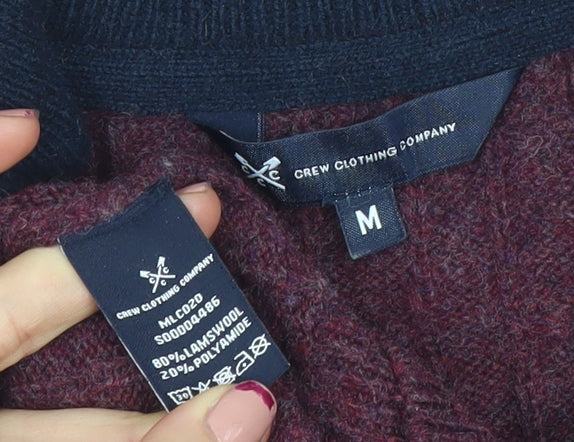 Crew Clothing Company Men's Blue Collared Cable-Knit Jumper Size M