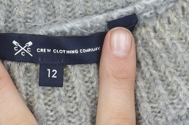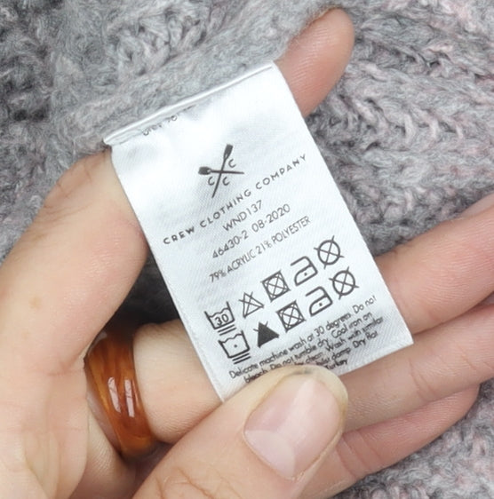 Elevate your casual wardrobe with this stylish women’s pullover jumper from Crew Clothing Company. Crafted to deliver both comfort and warmth, this piece is designed in a high neck style, keeping you cozy and chic during the cooler months. The jumper is made with a blend of 79% acrylic and 21% polyester, providing a comfortable knit fabric that retains shape and withstands wear. The subtle grey tone of this pullover adds a versatile touch to any outfit, making it easy to pair with your favourite jeans or a casual skirt. Ideal for autumn and winter, this chunky-knit jumper offers warmth without compromising on style. Perfect for casual outings or staying snug indoors, it's a must-have for any fashion-conscious wardrobe. Enjoy machine-washable convenience, ensuring easy care and long-lasting wear. Although it shows signs of gentle wear, this jumper remains in excellent condition, ready to be loved by its next owner. Add this versatile piece to your collection today and experience comfort and style effortlessly combined.