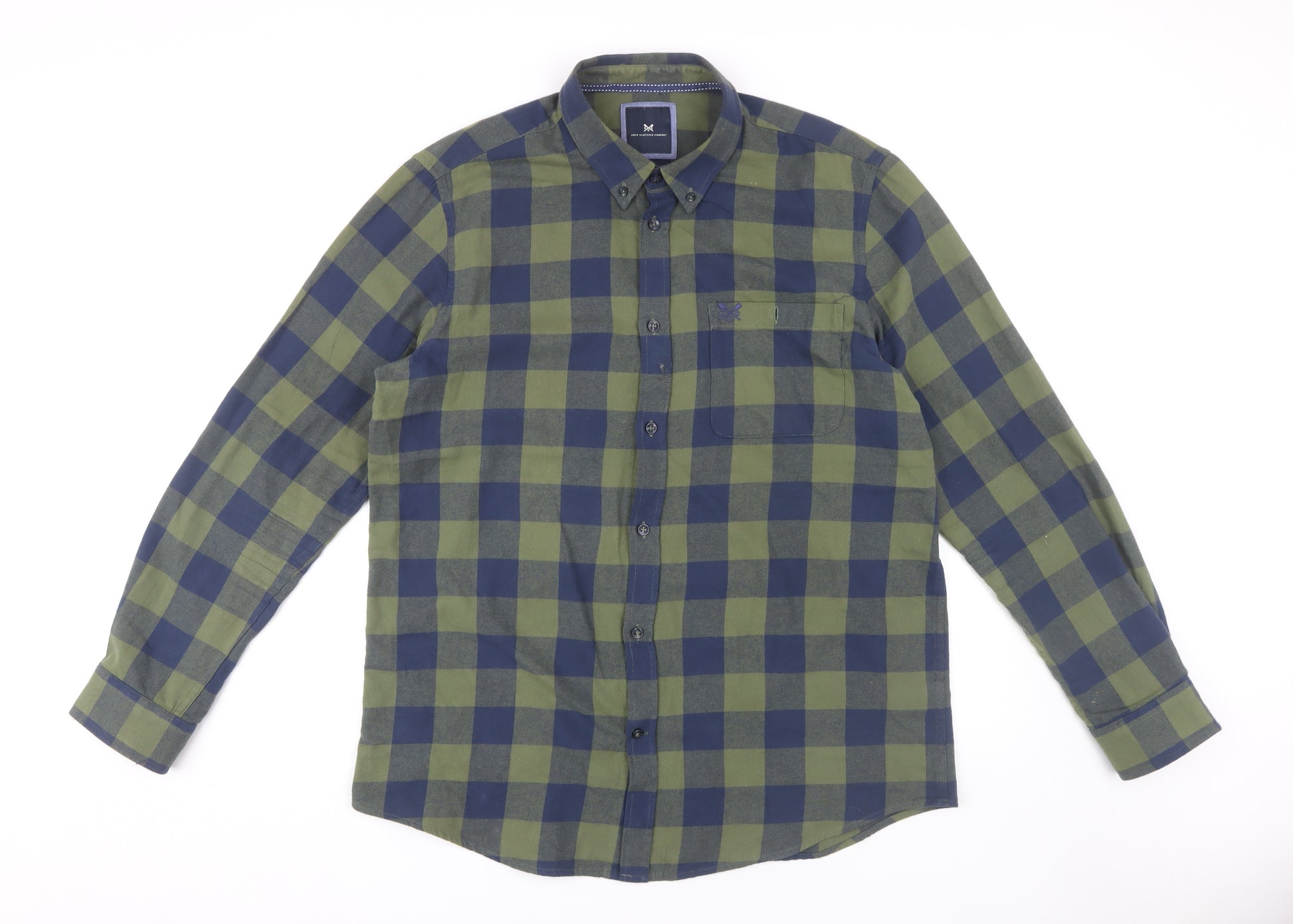 Crew Clothing Men's Green Blue Check Shirt XL Slim Fit