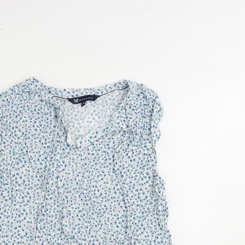 Womens Blue Floral Viscose Basic Blouse Size 12 V-Neck