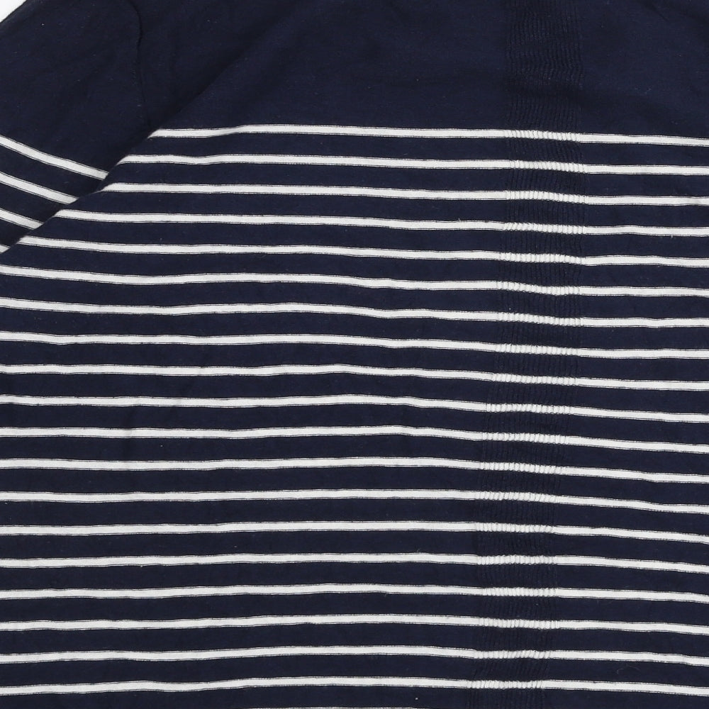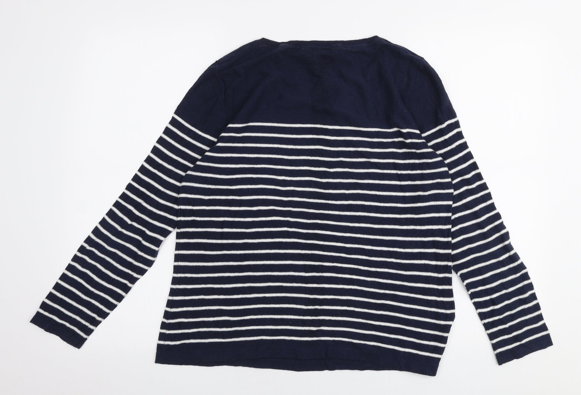 Womens Blue Round Neck Striped Linen Pullover Jumper Size 16