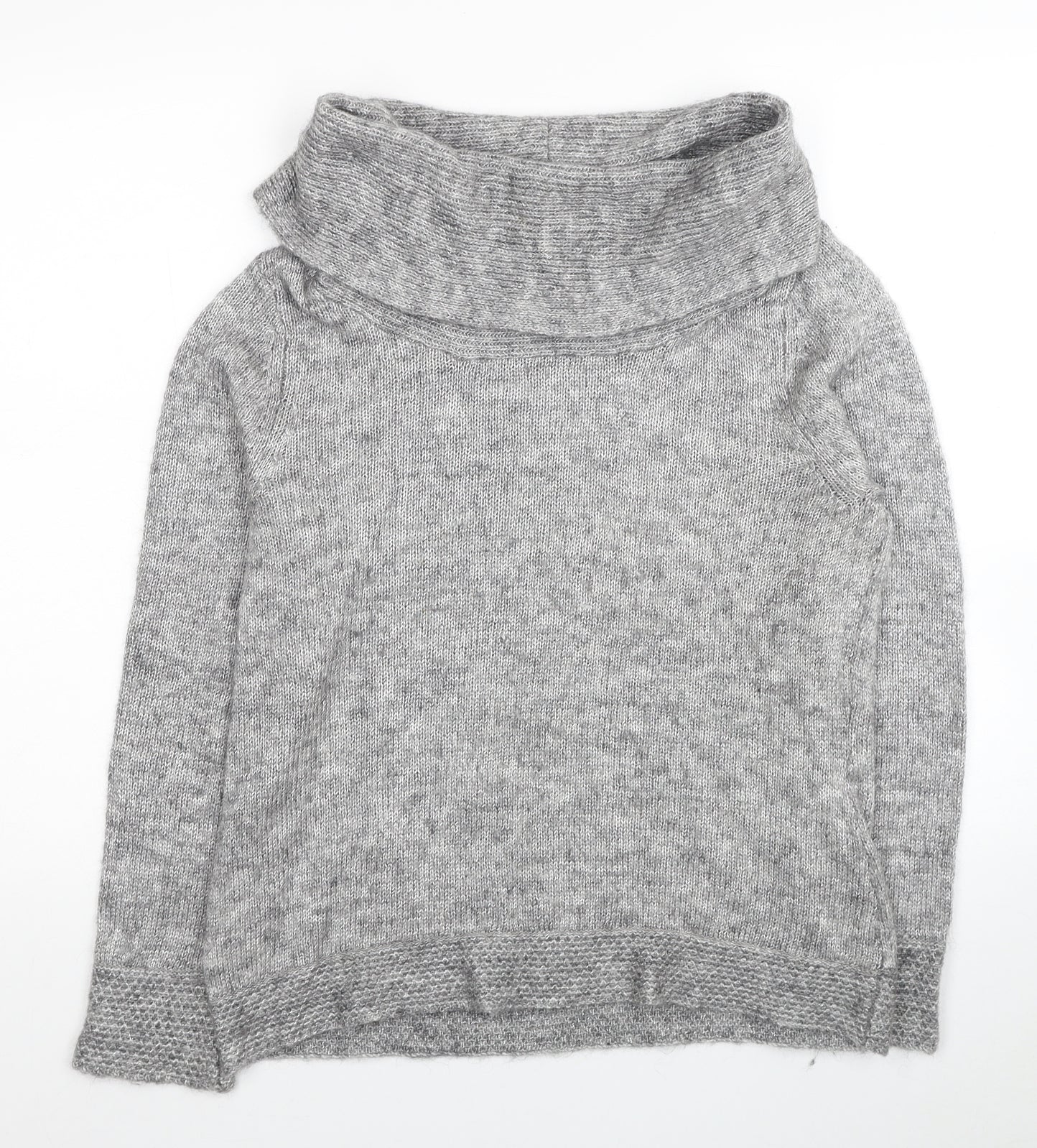 Womens Grey Roll Neck Nylon Pullover Jumper Size L