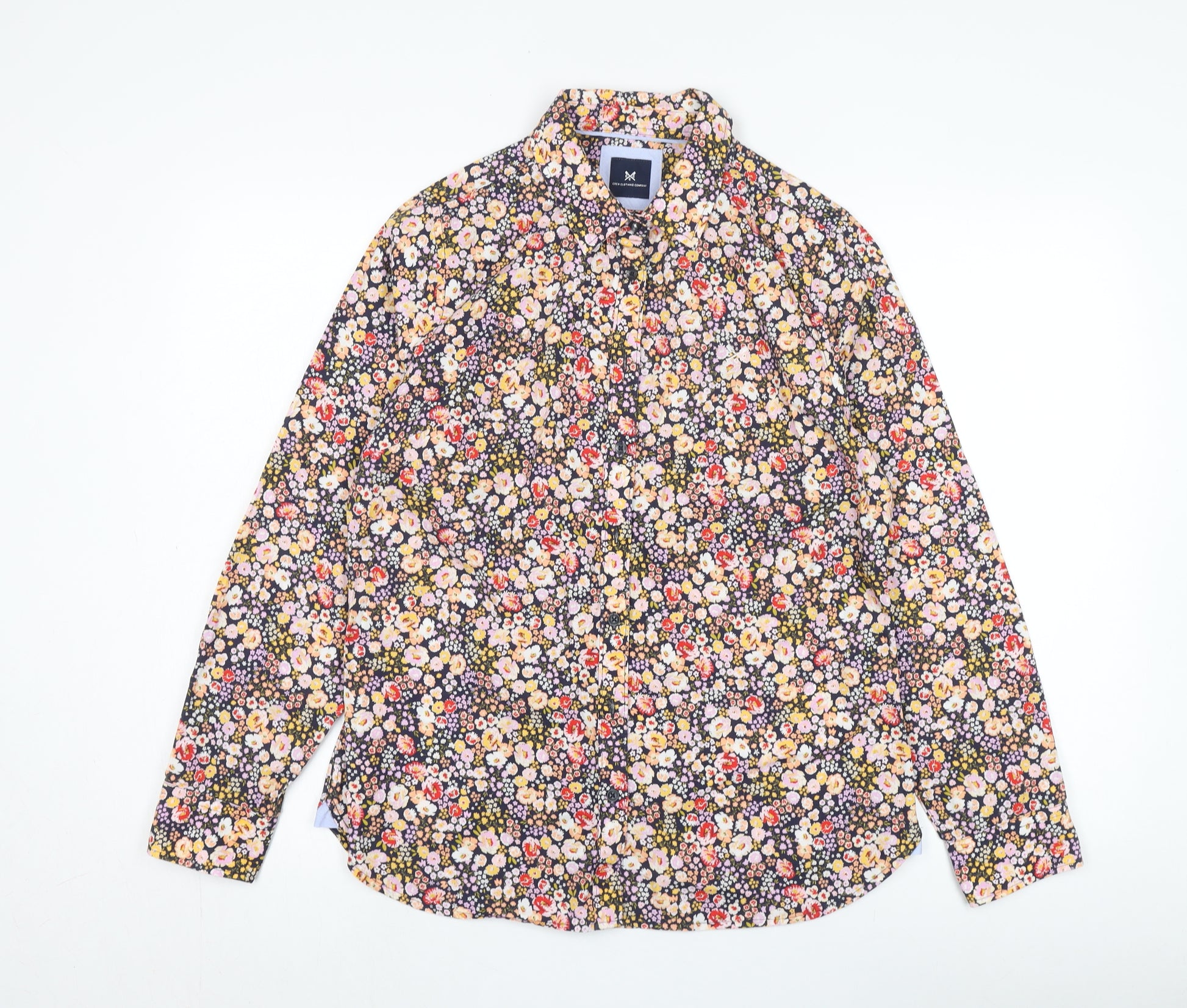 Add a touch of classic elegance to your wardrobe with this beautiful multicoloured floral blouse from Crew Clothing Company. Crafted from 100% cotton, this woven blouse offers a comfortable and breathable fit, making it ideal for spring, summer, and autumn. Featuring a collared neckline and long fitted sleeves, this blouse is perfect for both casual outings and workwear occasions. The classic fit ensures a flattering silhouette, while the vibrant floral pattern adds a fresh and stylish touch. Easy to care for, it is machine washable, allowing you the convenience of simple upkeep. This blouse comes in a size 12 and is in excellent condition with no visible defects. Whether you're heading to the office or enjoying a casual day out, this floral blouse is a versatile addition to any fashion-forward wardrobe.