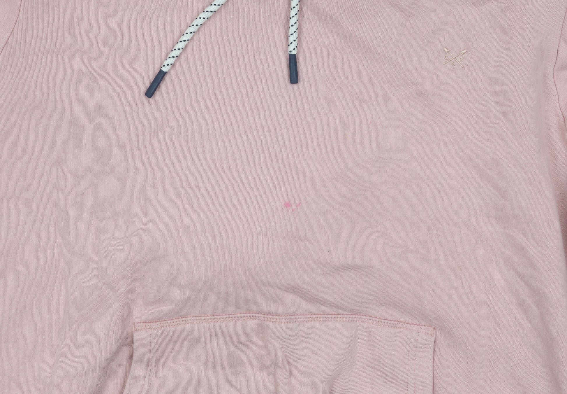 Elevate your casual wardrobe with this stylish Crew Clothing Company pink pullover hoodie. Designed for comfort and versatility, this women's hoodie features a relaxed fit, perfect for everyday wear. The cotton-polyester blend fabric is soft to the touch, while the fleece lining provides additional warmth, making it ideal for all seasons. The drawstring closure on the hood adds a functional touch, allowing you to adjust for a snug fit on chilly days. A subtle logo accent enhances its stylish appearance. The hoodie’s crew neckline and long sleeves add classic elements, making it a versatile piece to pair with jeans or leggings. Minor stains on the front do not detract from its appeal, offering you a quality second-hand option in very good condition. This hoodie is machine washable, ensuring easy garment care. Perfect for casual outings, weekend getaways, or cozying up at home, this Crew Clothing Company hoodie is a must-have for anyone looking to combine style and comfort effortlessly.