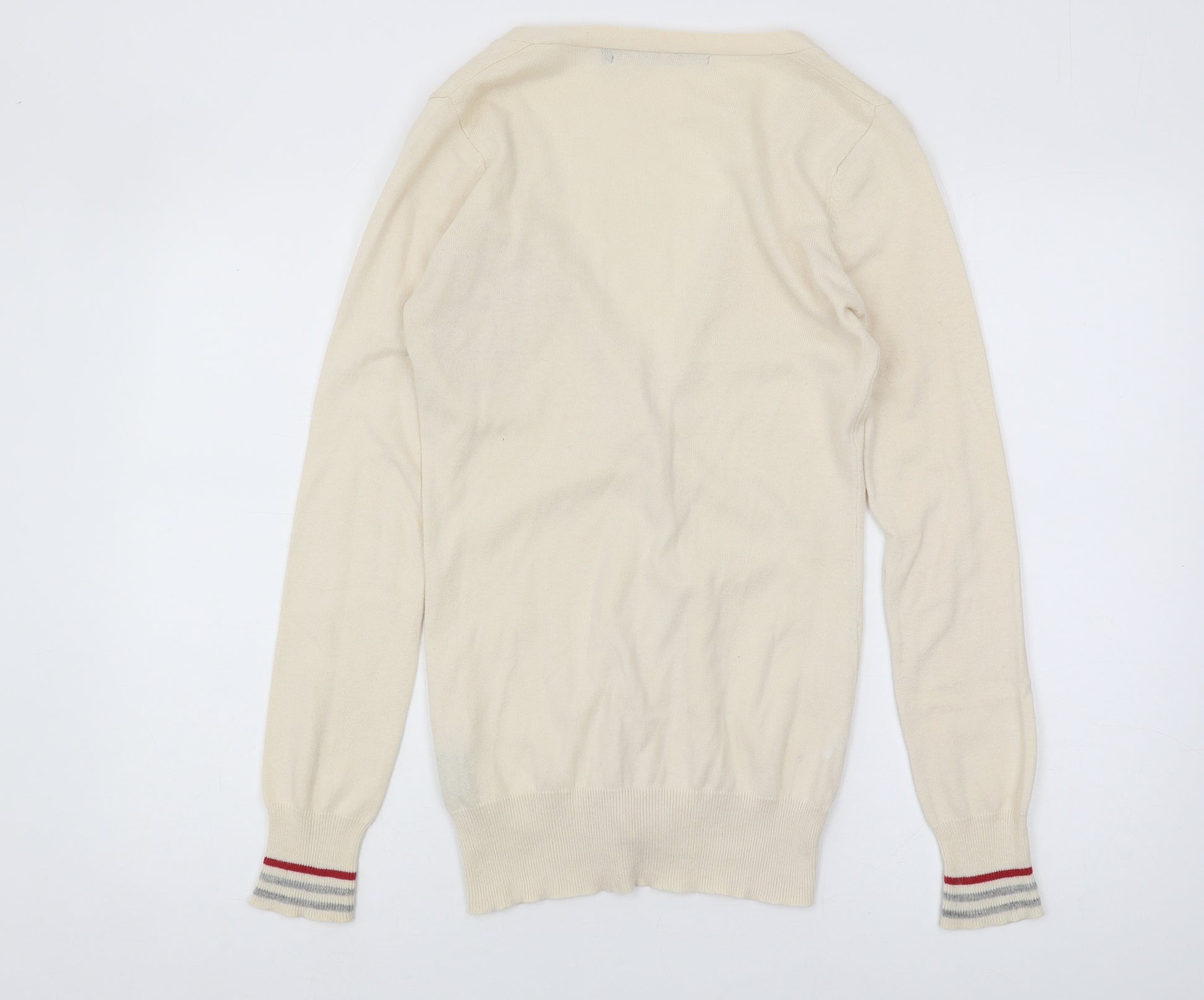 Amara Reya Women’s Ivory Wool Blend V-Neck Pullover Jumper Size M