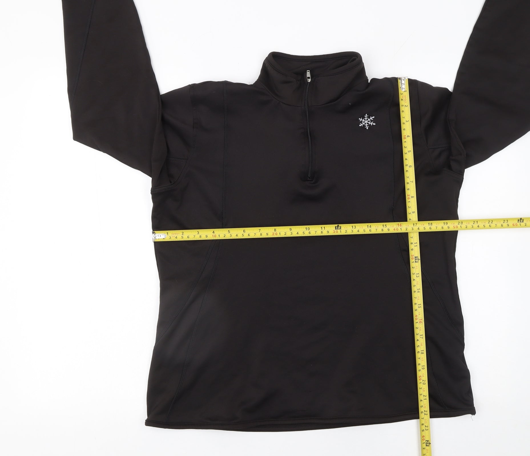 Stay warm and stylish with this Crivit Sports women’s black pullover sweatshirt, perfect for both active and casual wear. Designed for comfort and performance, this sleek long sleeve top features a 1/4 zip fastening and a subtle embroidered snowflake accent on the chest, adding a touch of winter charm to your outfit. Made from a smooth and flexible polyester and elastane blend, it offers a flattering fit that moves with you, making it ideal for walking, hiking, running, or everyday wear.The high collar provides extra warmth and coverage for cooler days, while the lightweight yet insulating fabric ensures breathability without compromising on comfort. Its moisture-wicking properties help keep you dry during high-energy activities, and the soft inner lining feels comfortable against the skin. This versatile sweatshirt can easily be layered under jackets or paired with leggings for a sporty, modern look. Whether heading to the gym, enjoying outdoor adventures, or simply lounging, this Crivit Sports top offers an excellent balance of practicality and style.With a relaxed fit and stretch structure, it allows for a wide range of movement while maintaining its shape. The black colourway gives it a classic and timeless aesthetic, ensuring it coordinates well with a variety of outfits. Crivit Sports is known for its reliable and performance-oriented designs, making this sweatshirt a great choice for active women who appreciate quality and function. Perfect for autumn and winter use, it also complements a casual wardrobe throughout the year. Restore your comfort and confidence during workouts or leisure with this dependable and stylish Crivit Sports pullover sweatshirt.