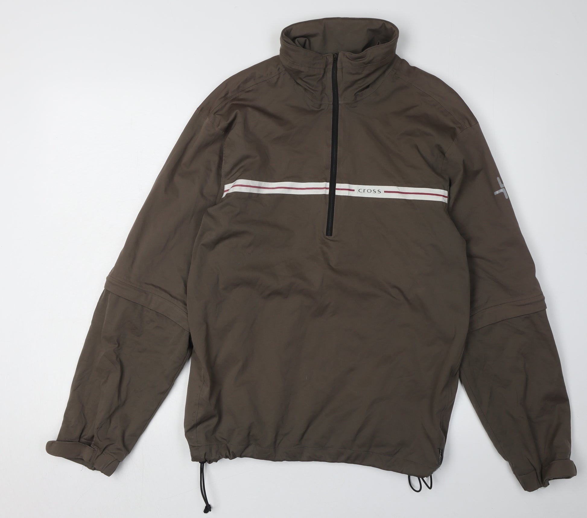 Step out in style and comfort with this Cross Men's 3-in-1 Jacket. Designed for casual wear, this jacket is perfect for all seasons. Featuring a stand-up collar and a convenient 1/4 zip, it strikes the perfect balance between style and practicality. The rich brown hue makes it a versatile addition to any wardrobe, easily pairing with jeans or chinos.Crafted from 100% polyester, this jacket offers a comfortable regular fit with an elastic waist to provide additional ease and flexibility. The logo accent adds a subtle touch of branding, aligning with a modern and understated aesthetic.This jacket comes in a regular size M and is ideal for men who seek both style and functionality. Despite its good condition, be aware of minor wear and scuffs that do not detract from its overall appeal. Perfect for casual outings, it's both machine washable and easy to maintain, adding practicality to its list of benefits.Whether you're heading to a casual meeting or spending the day exploring the city, this jacket provides the warmth and comfort you need without compromising on style. Secure it today for an incredible touch of fashion-forward utility that stands the test of time.