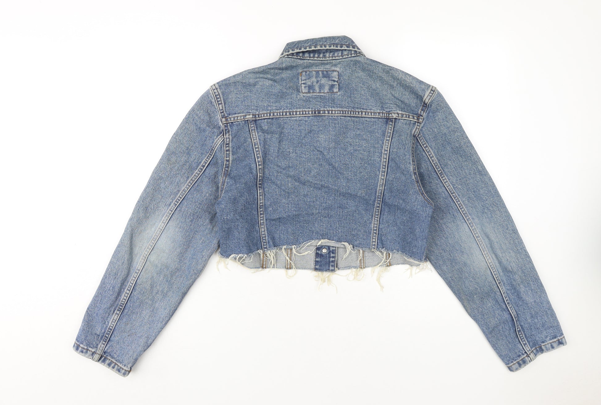 Explore casual sophistication with this Cross Women's Blue Cropped Denim Jacket in size Large. Tailored for a relaxed fit, this jacket features a classic collared design, enhanced by durable button closures for timeless appeal. Constructed with 100% cotton, it promises comfort and breathability, making it a perfect layering piece for both autumn and spring seasons. The cropped length adds a contemporary edge, perfect for pairing with high-waisted trousers or skirts. Accentuated by button details, this jacket embodies a retro and grunge theme, catering to those who appreciate vintage aesthetics with a modern twist. The denim fabric enhances durability while ensuring style longevity. Whether you're heading to a casual brunch or a weekend outing, this jacket is designed to complement your everyday look effortlessly. Embrace versatility and timeless style with this essential denim piece.