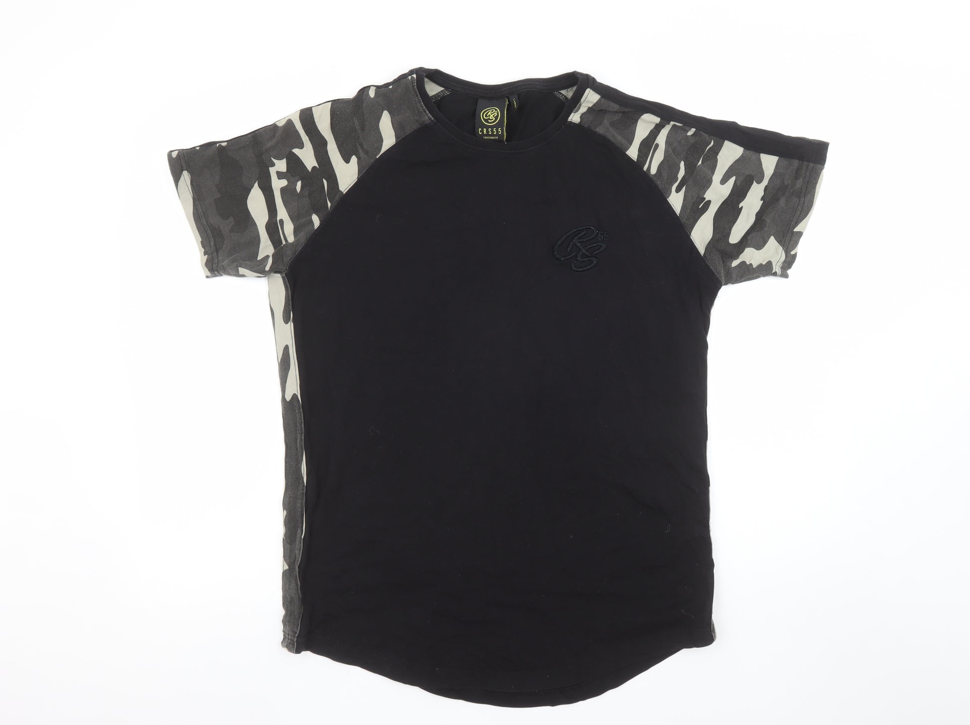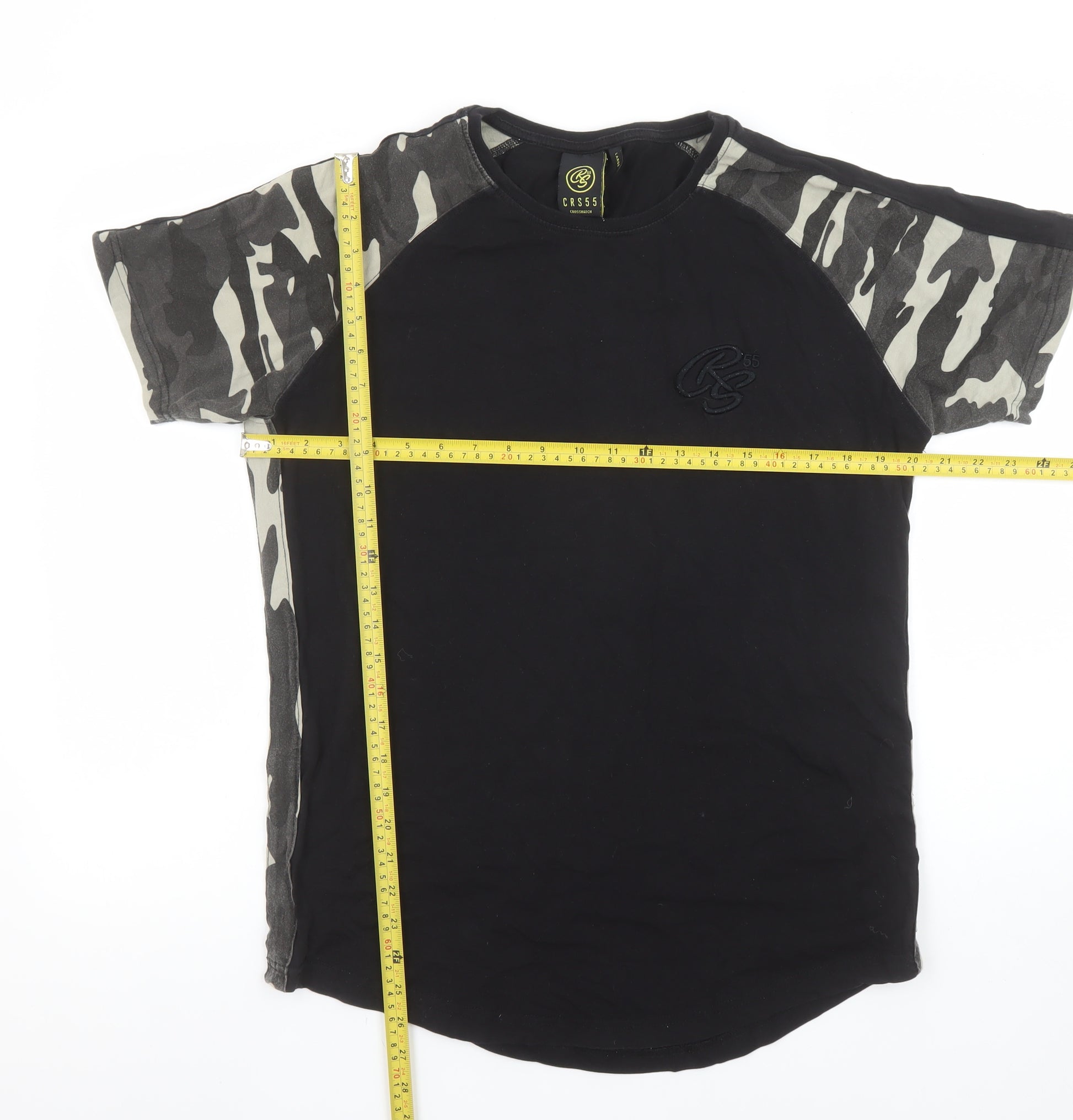 Men's Black Camouflage Panel Crew Neck T-Shirt Large