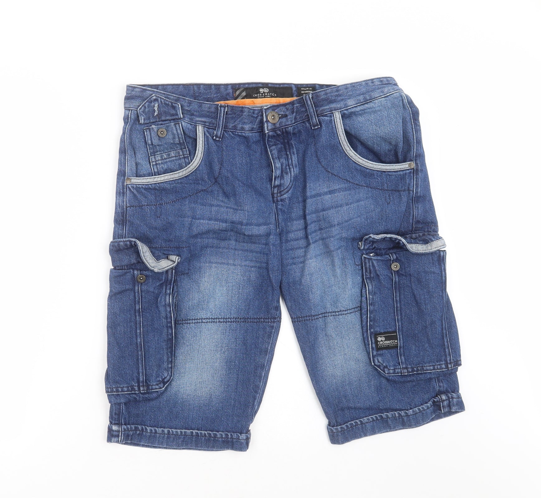 Mens Blue Cotton Cargo Shorts Size 34 in L14 in Regular Button