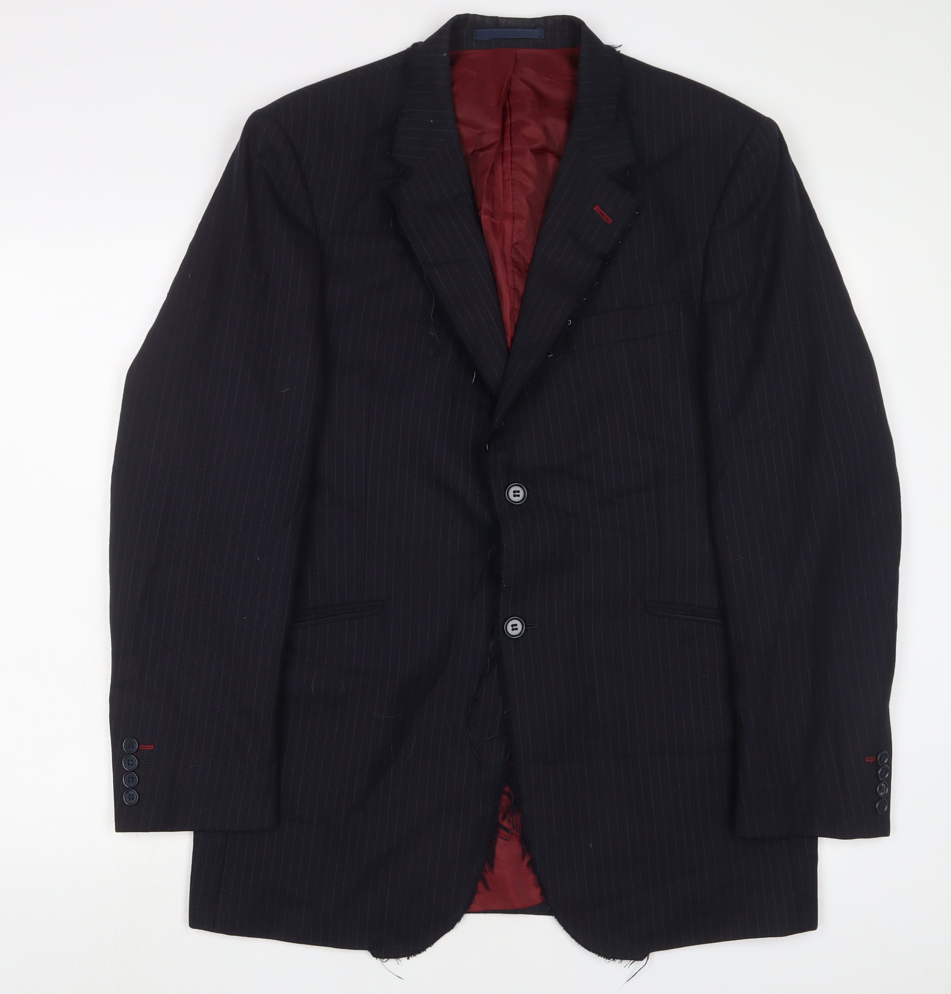 Mens Blue Striped Wool Jacket Suit Jacket Size L Regular