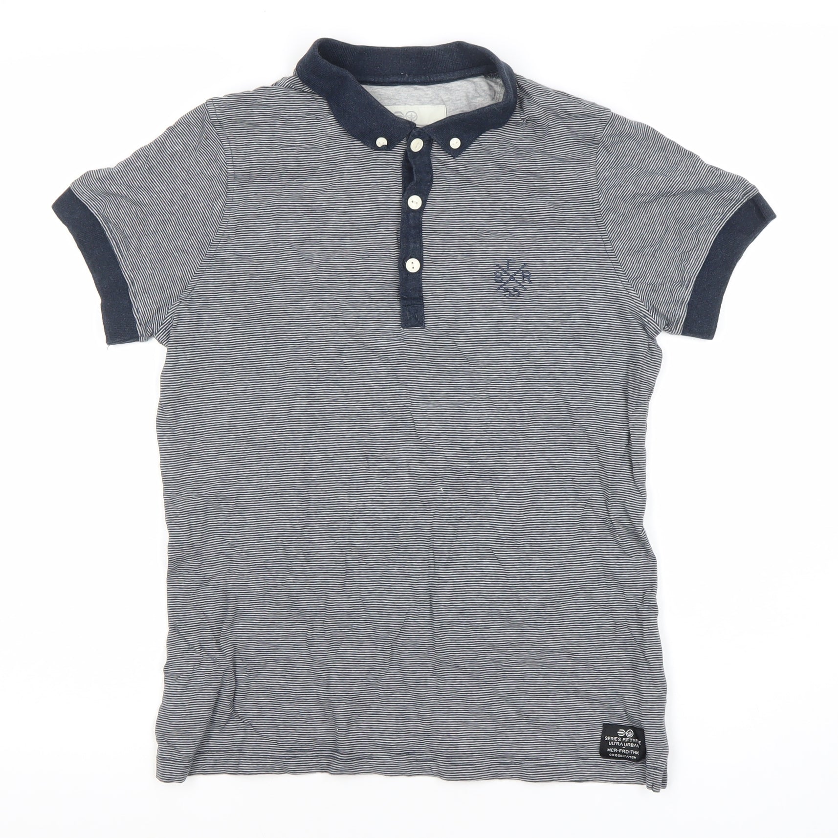 Elevate your casual wardrobe with this stylish Crosshatch Men's Polo Shirt, which showcases a classic grey striped pattern. Made from 100% cotton, this polo offers a breathable, comfortable fit that is perfect for warm spring and summer days. The shirt features short sleeves and a collared neckline, adding a touch of sophistication to your casual ensemble. Designed in a regular fit, it is suitable for various occasions, whether you're heading to a casual outing or enjoying a day at the park. This polo is machine washable, ensuring easy maintenance and long-lasting wear. The polo is accented with a logo on the chest, enhancing its casual yet refined look. Although it is pre-owned, its condition is excellent, with only slight wrinkles adding to its character. Ideal for men who appreciate stylish and comfortable clothing, this polo allows you to express your sense of fashion effortlessly.