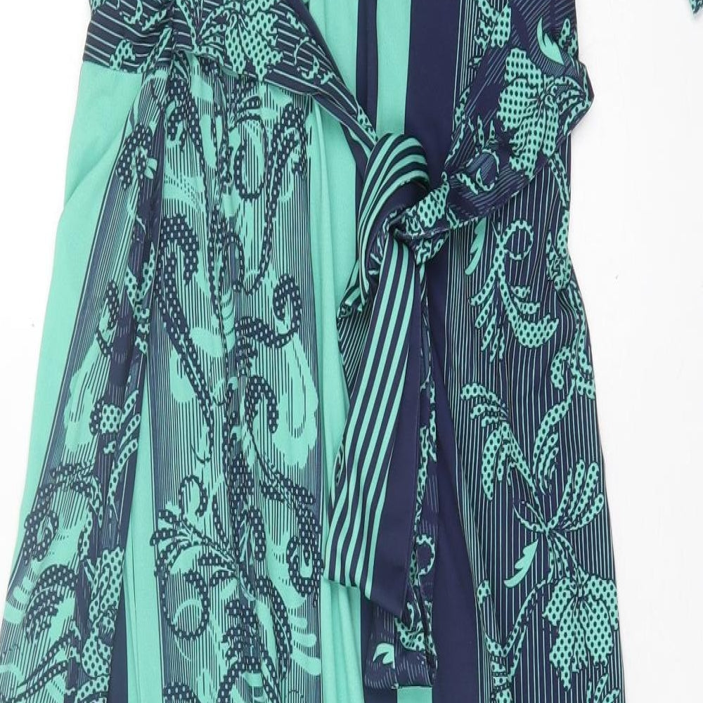 Select Womens Green Geometric Polyester T-Shirt Dress Size M Round Neck