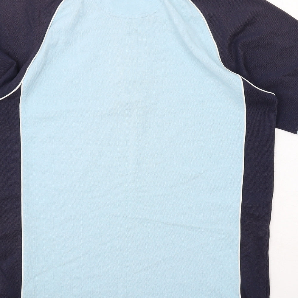 Mens Blue Colourblock Cotton Polo Size M Collared Button