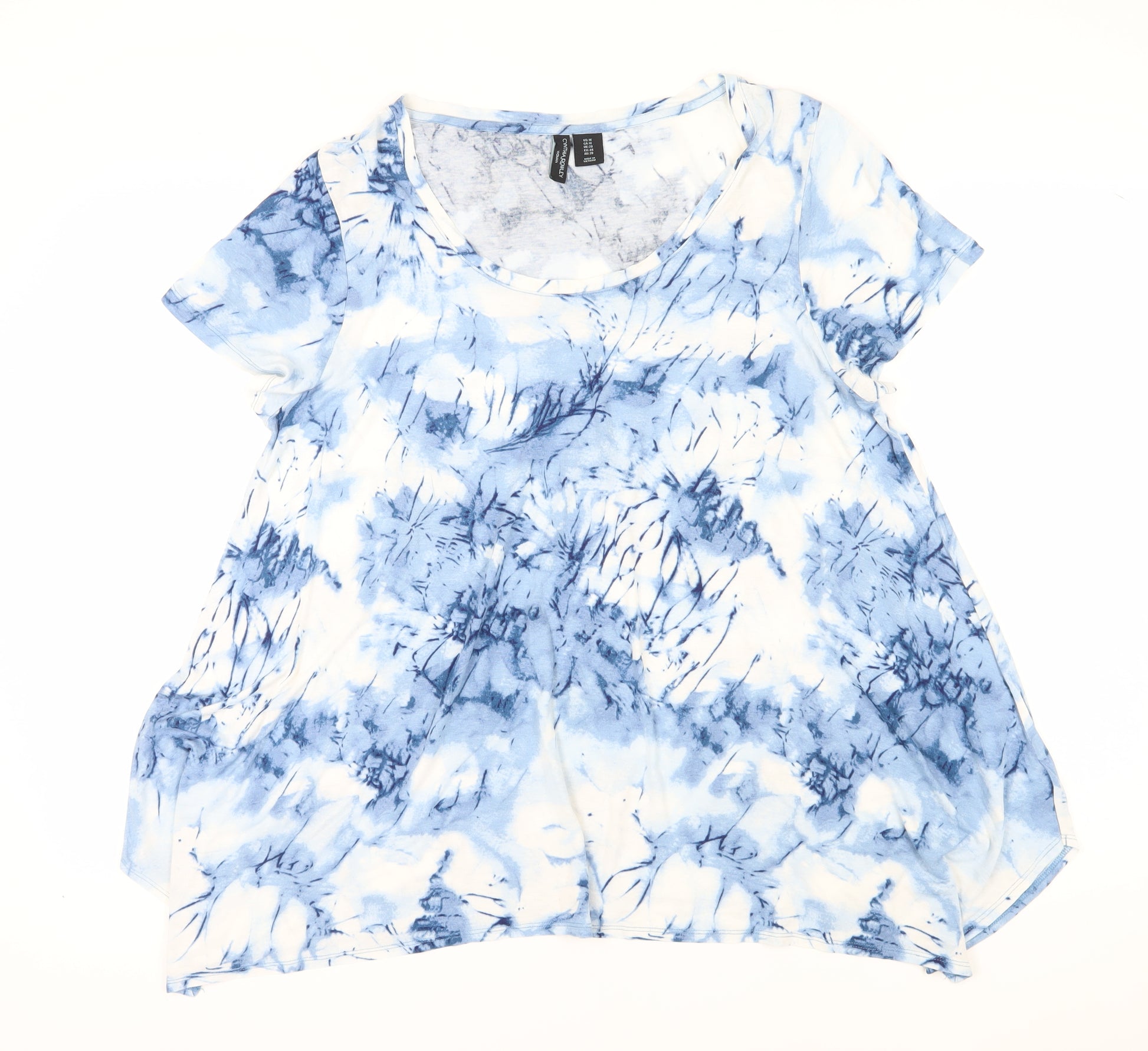 Elevate your casual wardrobe with the Cynthia Rowley Women's Plus Size Blue Floral T-Shirt. Crafted from a soft and breathable rayon blend, this relaxed fit t-shirt is perfect for spring and summer outings. The delicate blue floral pattern adds a touch of elegance to the basic style, making it versatile for various occasions. The round neck and short sleeves provide comfort and ease of wear, while the jersey fabric ensures a lightweight feel. Easy to care for, this machine washable tee maintains its vibrant colour and shape. Ideal for women who appreciate both style and comfort, this t-shirt is a must-have addition to your collection. Suitable for casual settings, it pairs beautifully with jeans or skirts. Available in size 20, it reflects effortless style with a modern edge. Purchase today and refresh your wardrobe with this charming t-shirt from Cynthia Rowley.