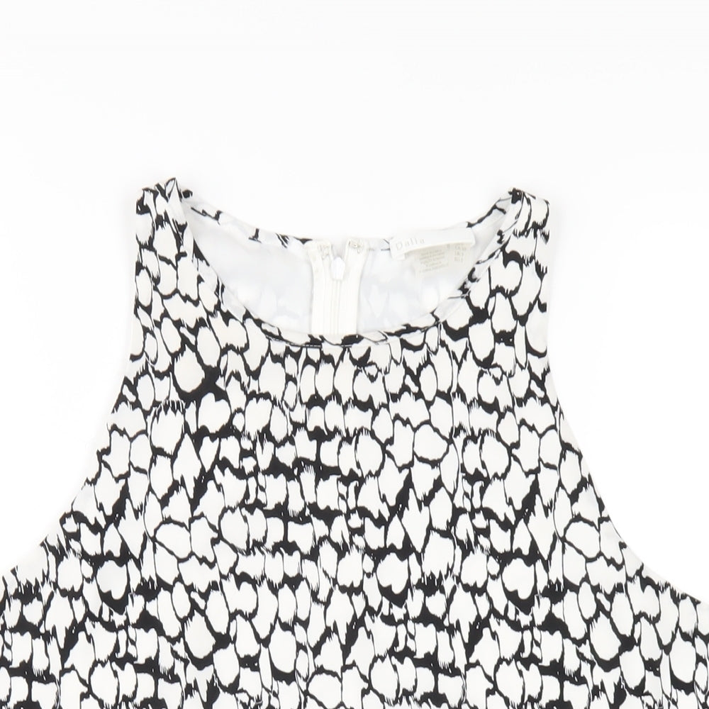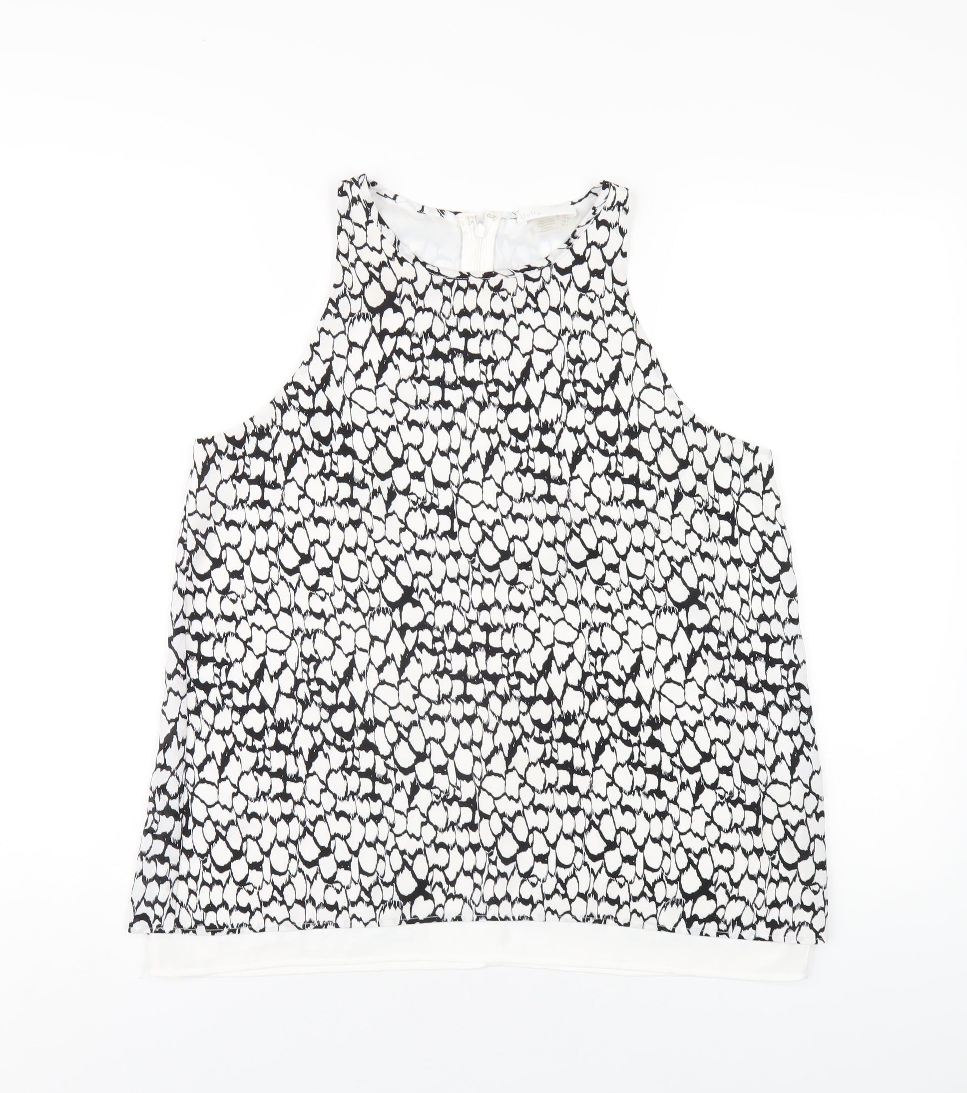 Womens White Geometric Polyester Basic Tank Size S Round Neck