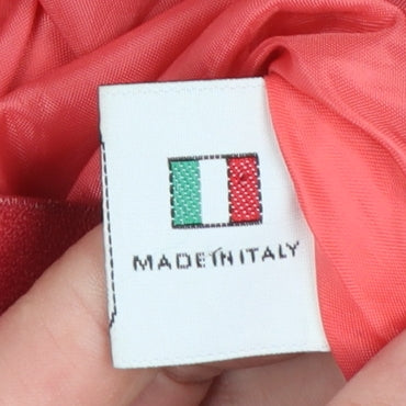 Step out in timeless Italian style with this striking red leather jacket by Dallas. Expertly crafted in Italy using genuine soft leather, this jacket captures a confident and sophisticated aesthetic that combines edge with elegance. The durable leather shell ensures long-lasting quality, while the beautifully tailored cut flatters the silhouette, making it a versatile wardrobe essential for the modern woman. Designed in a sleek biker style, it features a full front zip closure and four zipped pockets that add both function and flair. The stand collar provides structure and a hint of attitude, perfect for layering over casual tees or pairing with a smart evening outfit. The interior is lined for added comfort and ensures a smooth fit. This piece, made from 100% genuine leather (‘Vera Pelle’), showcases traditional Italian craftsmanship and delivers both style and substance. The bold red tone adds a touch of vibrancy that sets it apart, ideal for injecting personality into everyday looks. In very good pre-owned condition with a minor scuff on the sleeve, this jacket has been well cared for and remains a statement piece suitable for multiple seasons. Perfect for pairing with jeans, boots, or even dresses, this Dallas red leather jacket is a premium choice for Autumn, Spring, and Winter wear. It’s effortlessly chic, confidently bold, and designed to be noticed wherever you go. A true must-have for any fashion-conscious woman looking to add a dash of Italian craftsmanship to her outerwear collection.