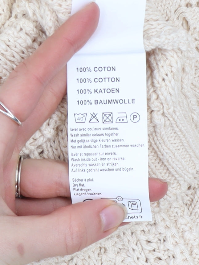 This Damart women’s open-knit jumper is a must-have for anyone seeking a versatile, breathable piece that’s perfect for layering. Crafted entirely from soft 100% cotton, this pullover ensures all-day comfort and a naturally airy feel, ideal for moderate weather. The short sleeves and open-knit design create a beautifully textured, lightweight fabric that works equally well in spring, summer, or early autumn. The neutral beige tone offers effortless pairing with jeans, skirts, or tailored trousers for an elegant yet relaxed style. Its crew neckline adds a timeless touch, while ribbed trims at the cuffs and hem complete the look with subtle structure. Made with everyday comfort in mind, the cotton knit feels soft on the skin and allows great freedom of movement. The jumper’s casual elegance makes it suitable for numerous occasions, whether you’re heading out for a lunch date, spending a cosy weekend at home, or wanting a light layer in the office. The breathable cotton and easy machine wash care instructions make this piece convenient for regular wear, helping it stay fresh and looking new longer. With Damart’s reliable craftsmanship, this knitwear combines durability with effortless style. The relaxed fit ensures a comfortable silhouette that flatters a range of body types without feeling restrictive. Its simple, no-pattern finish gives it a minimalist look, easy to accessorize or dress up with jewellery and scarves. Designed for real-life comfort and timeless appeal, this jumper brings practicality and elegance together in one. A great addition to any wardrobe, offering comfort and style that never go out of fashion. Ideal for Casual occasions, and with light signs of gentle wear consistent with careful use, this item remains in Excellent condition, ready to be worn and loved again. A natural choice for relaxed sophistication in any season.