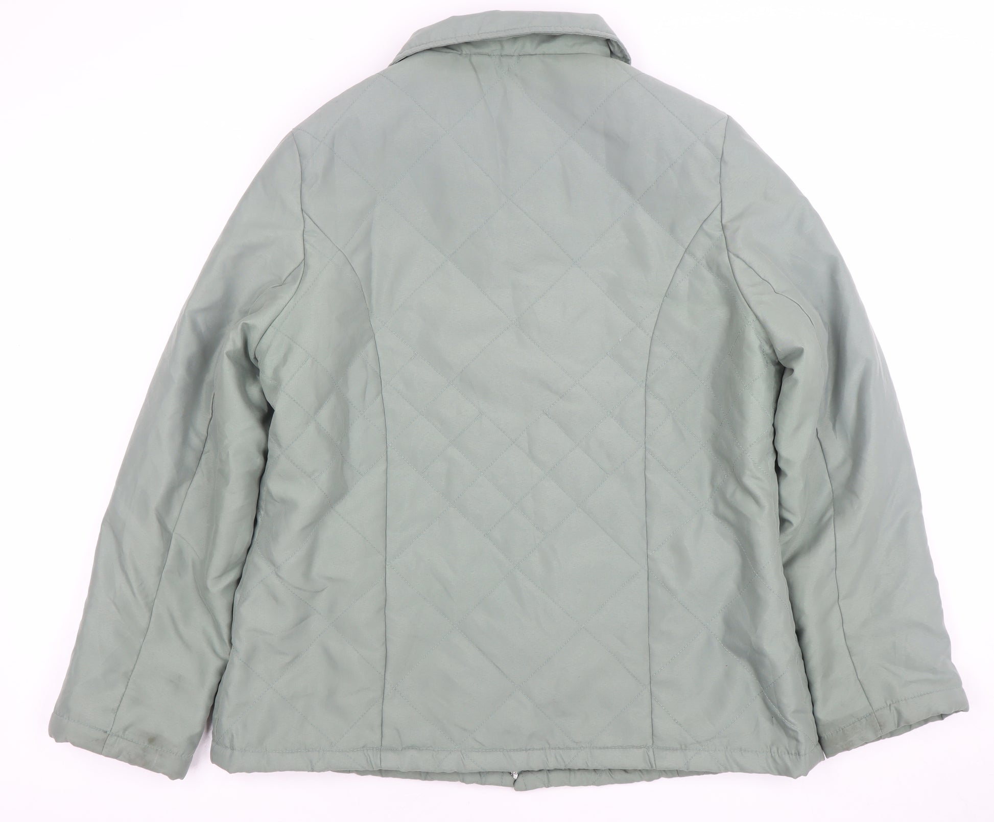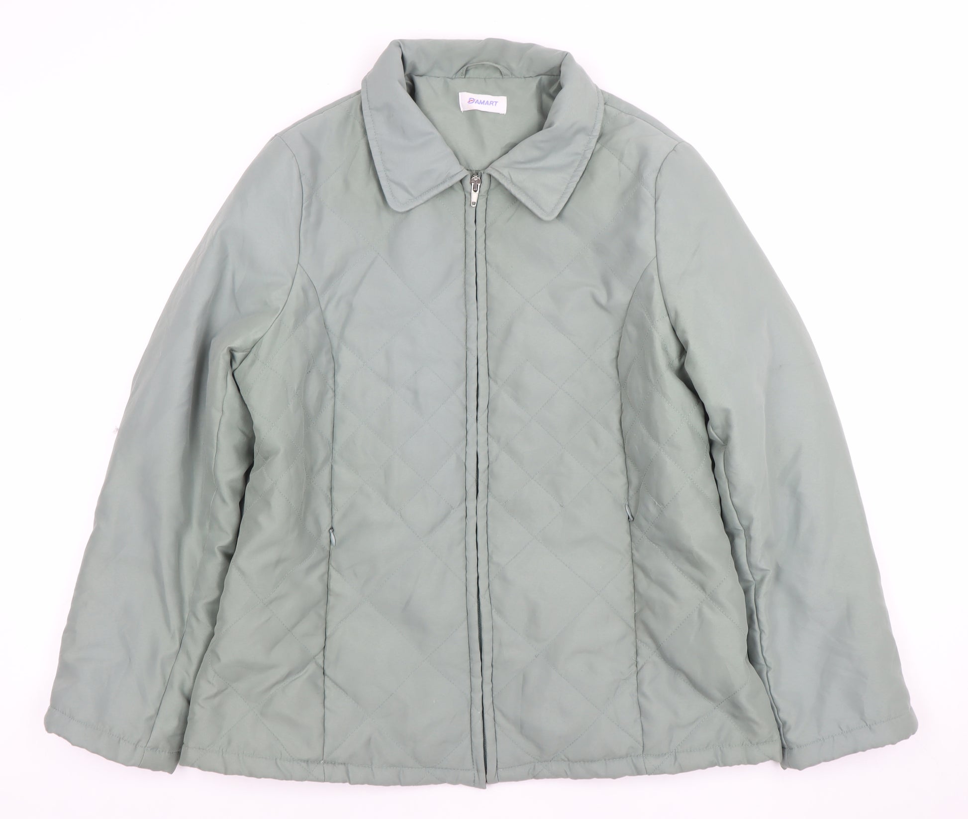 Stay effortlessly stylish and cosy with this versatile Damart women’s quilted jacket in a soft sage green tone, designed to offer medium warmth and a timeless look. Crafted from 100% polyester for durability and easy care, the jacket features a diamond-quilted design that adds classic texture while maintaining a lightweight feel. The regular fit and mid-length cut provide a flattering silhouette, ideal for layering over everyday outfits during the cooler seasons. With a secure full-zip fastening and two front pockets for practical convenience, this jacket makes an excellent choice for casual wear, travel, or daily errands. Its polyester lining and quilted insulation deliver comfortable warmth without excess weight, allowing for easy movement and comfort throughout autumn and winter. Damart’s reputation for functional fashion shines through in this piece — combining practicality, comfort, and classic styling. Whether you’re taking a stroll in the park, running errands, or travelling, it keeps you feeling warm and looking effortlessly polished. The soft green hue brings a touch of subtle colour to any wardrobe, pairing beautifully with neutral or denim tones. Machine washable and easy to maintain, this jacket is designed for fuss-free everyday wear while keeping its shape and appearance intact. The barely visible light wear on the sleeves reflects its excellent pre-loved condition, making it a smart and sustainable wardrobe choice. Bring warmth, comfort, and timeless appeal to your look with this Damart quilted jacket — the perfect balance between elegance and practicality.