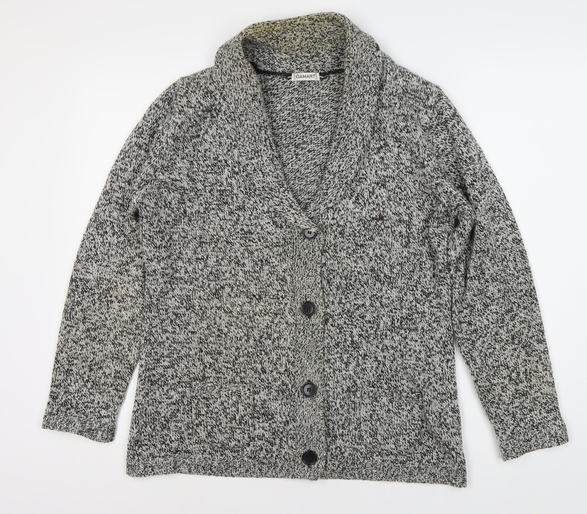 This Damart women's cardigan in size M is a stylish and versatile addition to your wardrobe. Crafted from 100% acrylic, this cardigan ensures warmth and comfort, perfect for casual occasions. Its classic button accents add a touch of elegance, making it a great choice for layering over any outfit. The regular fit and long sleeves offer a comfortable yet chic look, suitable for daily wear. With its timeless grey colour and no pattern design, this cardigan easily pairs with any ensemble. Ideal for machine washing, it provides convenience and ease of care, maintaining its excellent condition without visible damages. Upgrade your casual style with this practical and fashionable piece.