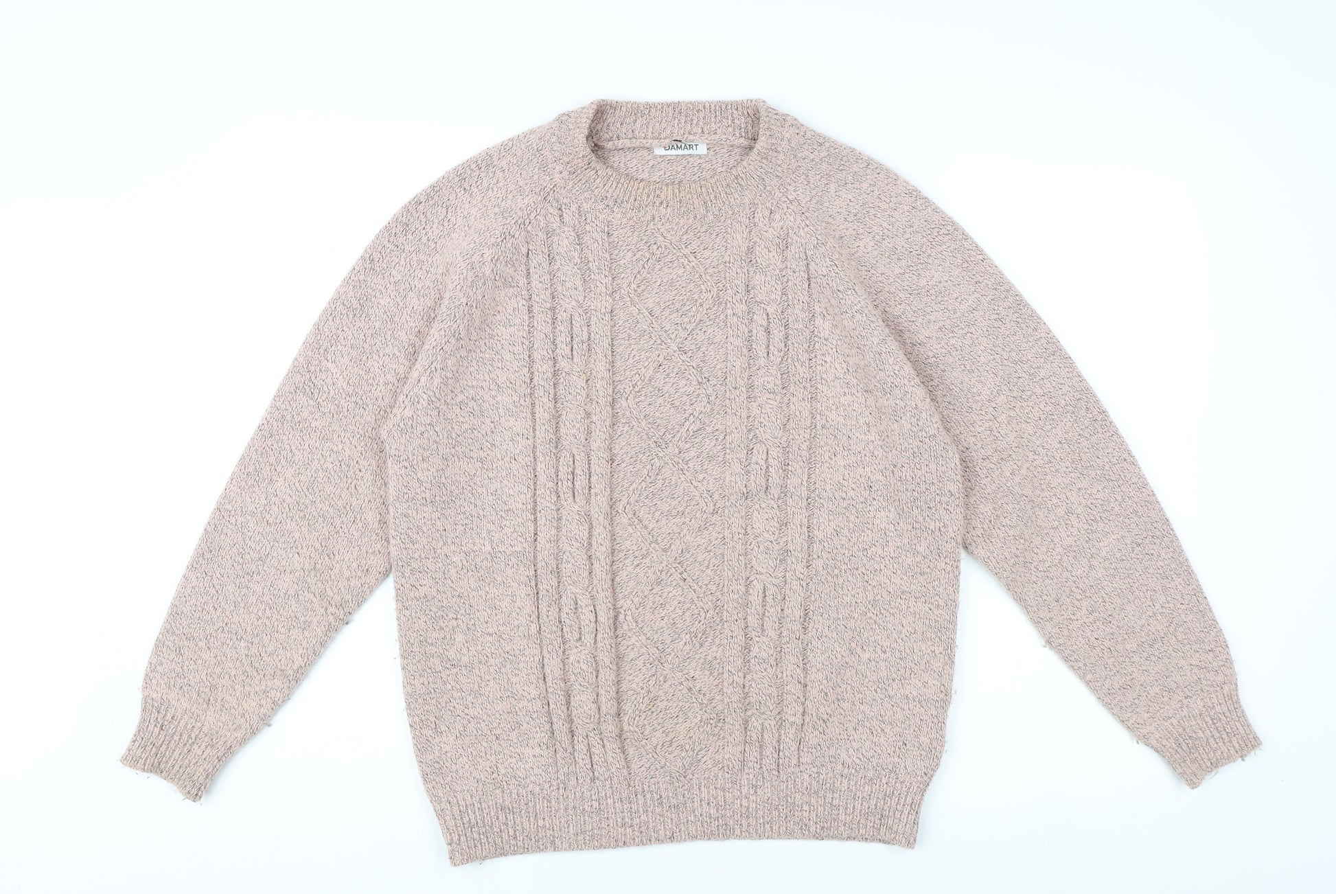 This stylish Damart jumper is a classic addition to your wardrobe, perfect for keeping warm during the autumn and winter months. Crafted from a blend of acrylic, polyamide, and polyester, it's designed for ultimate comfort and durability. The elegant cable-knit texture adds a touch of sophistication, while the regular fit ensures a comfortable wear for any occasion. Featuring a timeless crew neck and long raglan sleeves, this beige pullover is versatile enough to be paired with any outfit. Machine washable for easy care, this jumper is ideal for casual outings or staying cosy indoors.