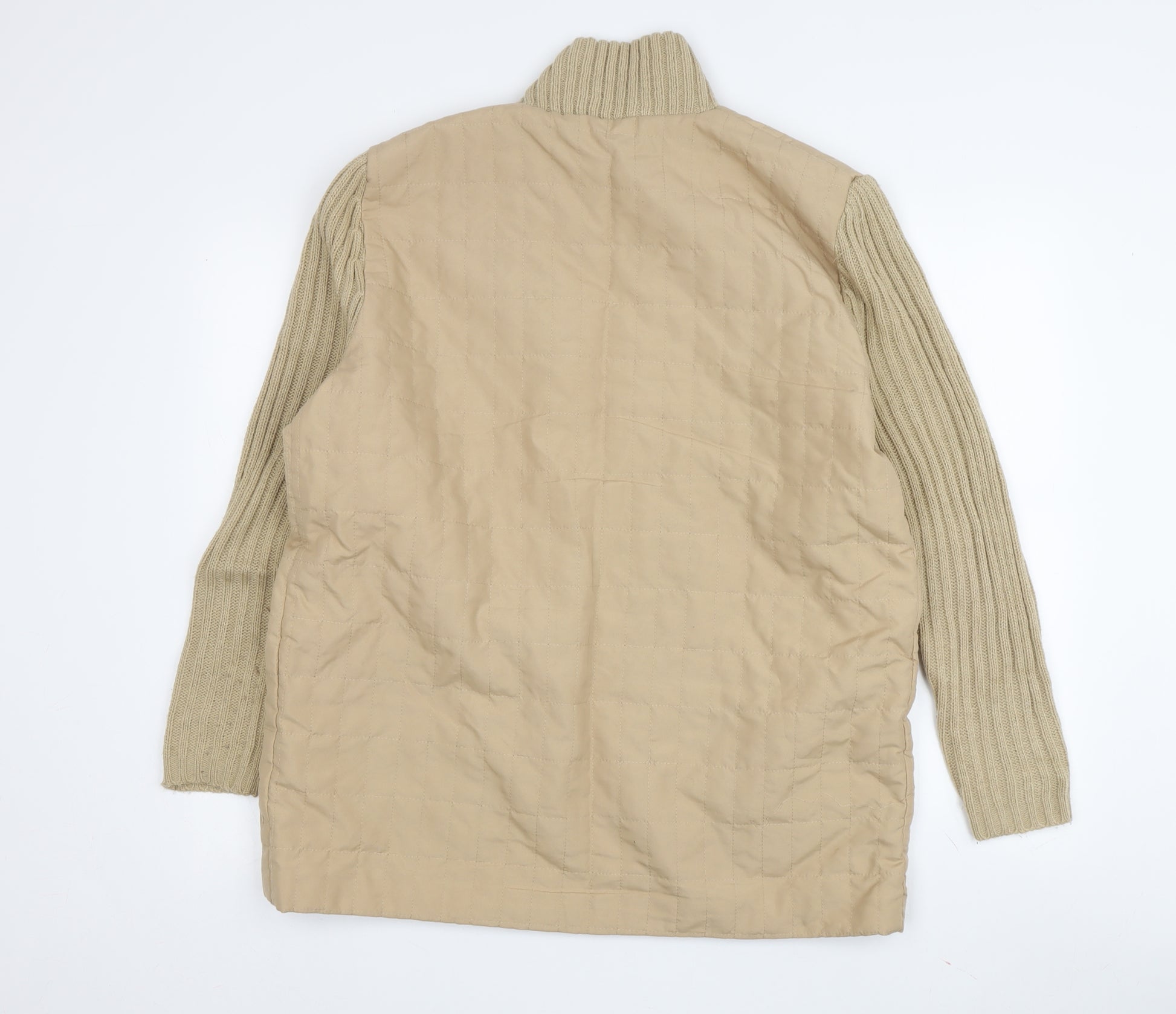 Wrap yourself in comfort and style with the Damart Women's Quilted Jacket. Designed in a versatile beige hue, this jacket is perfect for autumn and winter. Its mid-length cut offers adequate coverage and warmth, while maintaining a fashionable look. The jacket is crafted with a durable outer shell blend of polyester and acrylic, providing both resilience and comfort. Its knit fabric type adds a cozy touch, making it an essential piece for chilly days. Designed with a button closure and long sleeves, it provides a snug fit. Whether you're heading out for a casual outing or need an extra layer for a day out, this quilted jacket adapts seamlessly to your daily wardrobe. Despite a small mark on the front, the jacket is in very good condition, offering great value without compromising style. An ideal pick for women seeking a comfortable yet stylish addition to their outerwear collection.