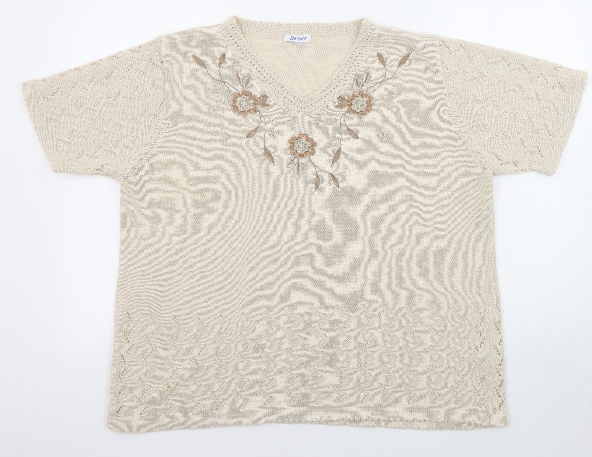 Womens Beige V-Neck Acrylic Pullover Jumper Size 22 - Size 22-24