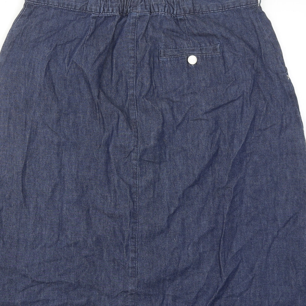 Womens Blue Cotton A-Line Skirt Size 16 Button