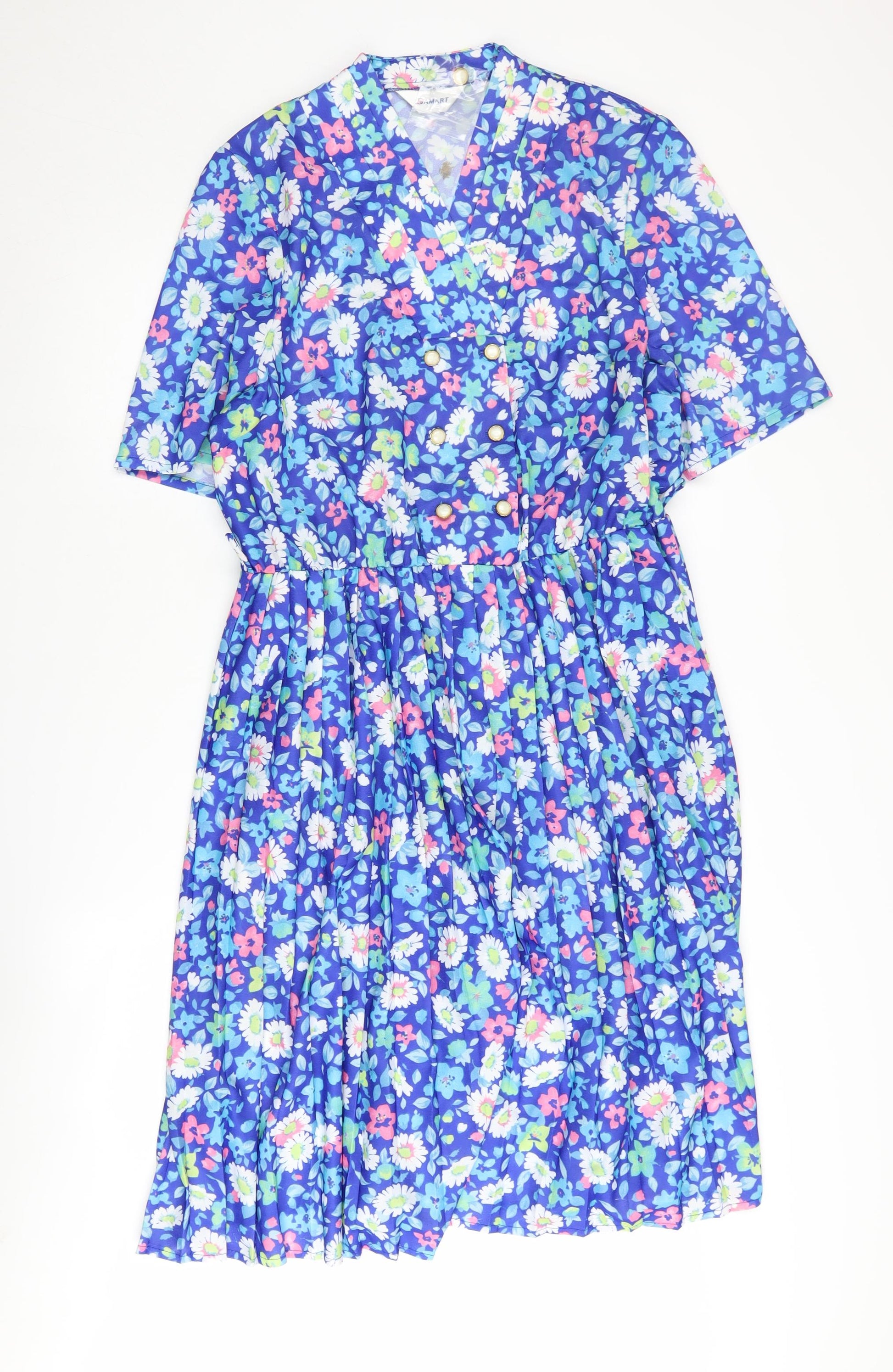 Embrace a touch of floral elegance with this stunning Damart women's shirt dress. Designed for both casual outings and laid-back summer gatherings, this dress is a perfect blend of style and comfort. Featuring a delightful blue floral pattern, this midi-length dress brings a refreshing pop of colour to your wardrobe. The short sleeves and V-neckline add a classic, timeless appeal, effortlessly complementing any spring or summer day. Crafted entirely from polyester, this dress promises durability and a soft, woven texture that stays looking fresh all day. The button accents add a stylish flair, while maintaining a comfortable and flattering fit. Perfect for any occasion requiring casual chic, this dress is sure to become a favourite. With its regular fit size 20, it's tailored to enhance your silhouette. Whether you're planning a trip to the park or a day out shopping, this Damart dress delivers a fresh, breezy vibe, ensuring you remain at the forefront of fashion with minimal effort. Pair it with your favourite sandals or sneakers for a complete look. A must-have floral piece for the season.