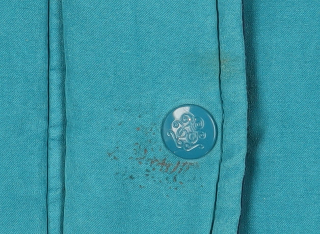 Stay cosy and stylish this winter with this charming blue parka jacket from Damart. Crafted in a relaxed fit, this jacket offers comfort and warmth, making it an ideal addition to your casual wardrobe. Designed in a beautiful blue shade, it is crafted from durable polyester with cotton lining, providing reliable insulation for chilly days. The hooded design ensures protection against the elements, while the mid-length cut adds a touch of elegance. Featuring buttons for closure, this jacket offers a clean and streamlined look. The lined interior enhances warmth, making it perfect for winter outings. Despite slight stains on the button, the jacket remains in good condition, offering excellent functionality and style. With its lined feature and hooded design, this jacket is a versatile piece for casual occasions. Embrace the winter season with this stylish and functional parka from Damart.