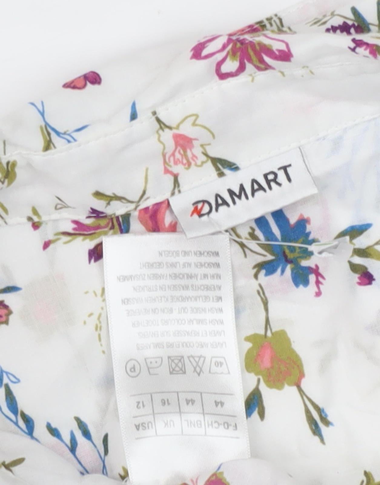 Add a touch of elegance to your wardrobe with this stunning Damart women's blouse, perfect for spring and summer. This collared blouse showcases a charming multicoloured floral pattern on a crisp cotton fabric, ideal for casual occasions. The blouse features a 3/4 sleeve length, providing a comfortable fit for warmer days, while its regular fit and woven material ensure a flattering silhouette. Its classic design is complemented by a simple button closure, offering both style and ease of wear. Whether you're heading to a brunch or a day out, this blouse pairs beautifully with jeans or skirts. Embrace this lovely floral theme and enjoy a versatile addition to your collection.